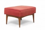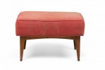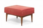 Mid-Century Italian Walnut Red Upholstered Ottoman