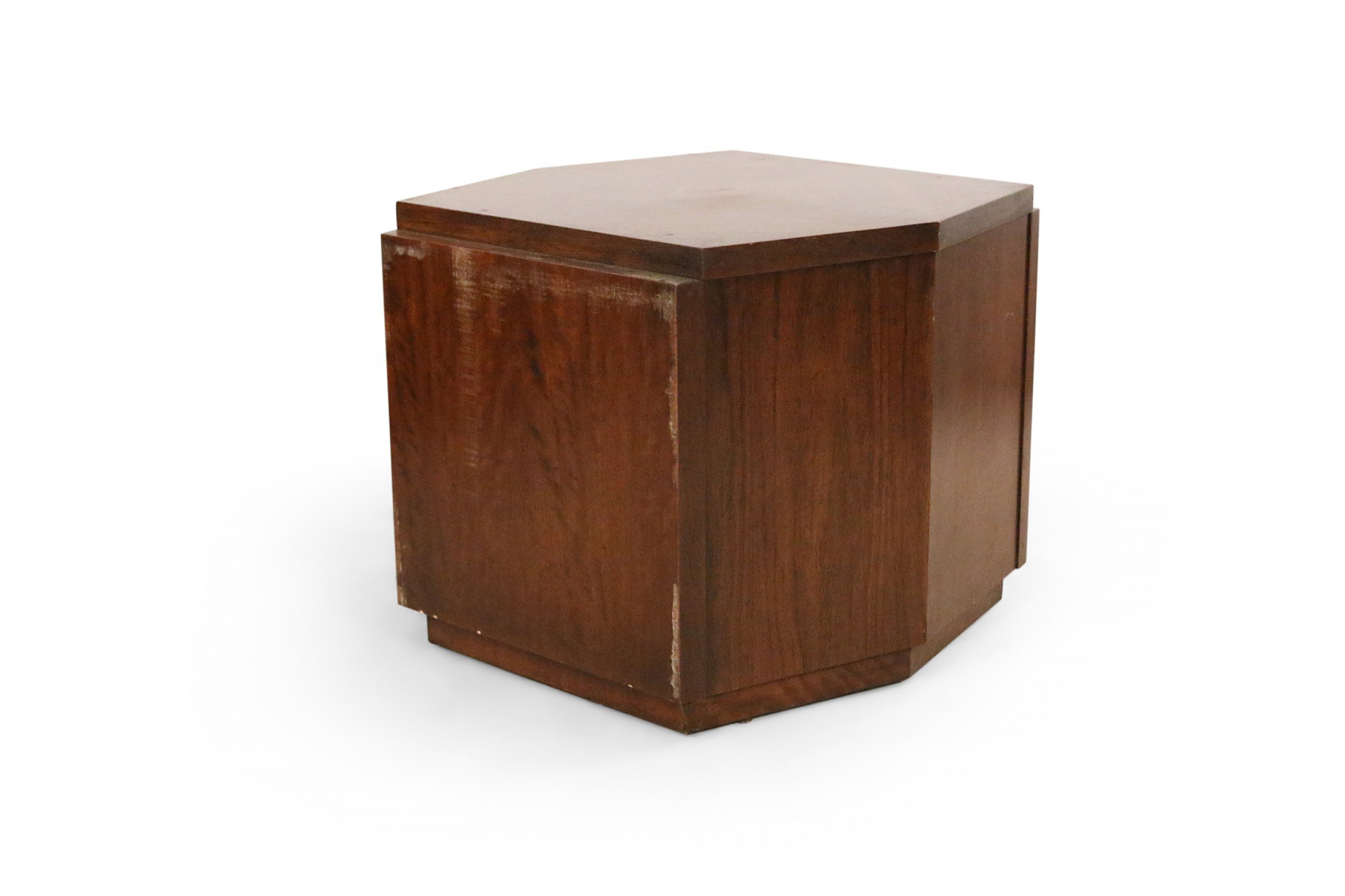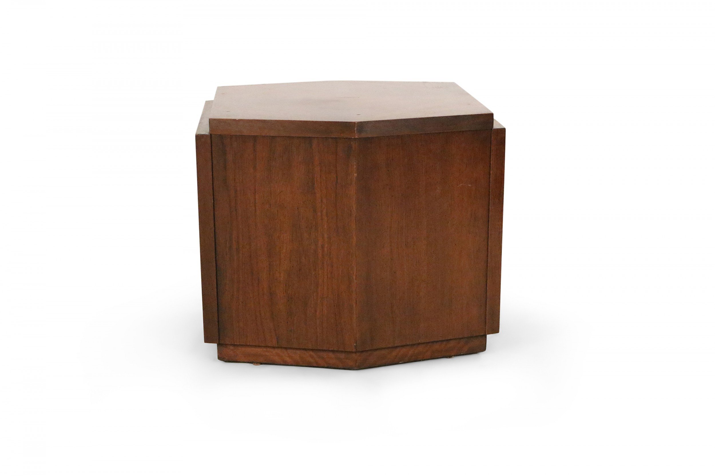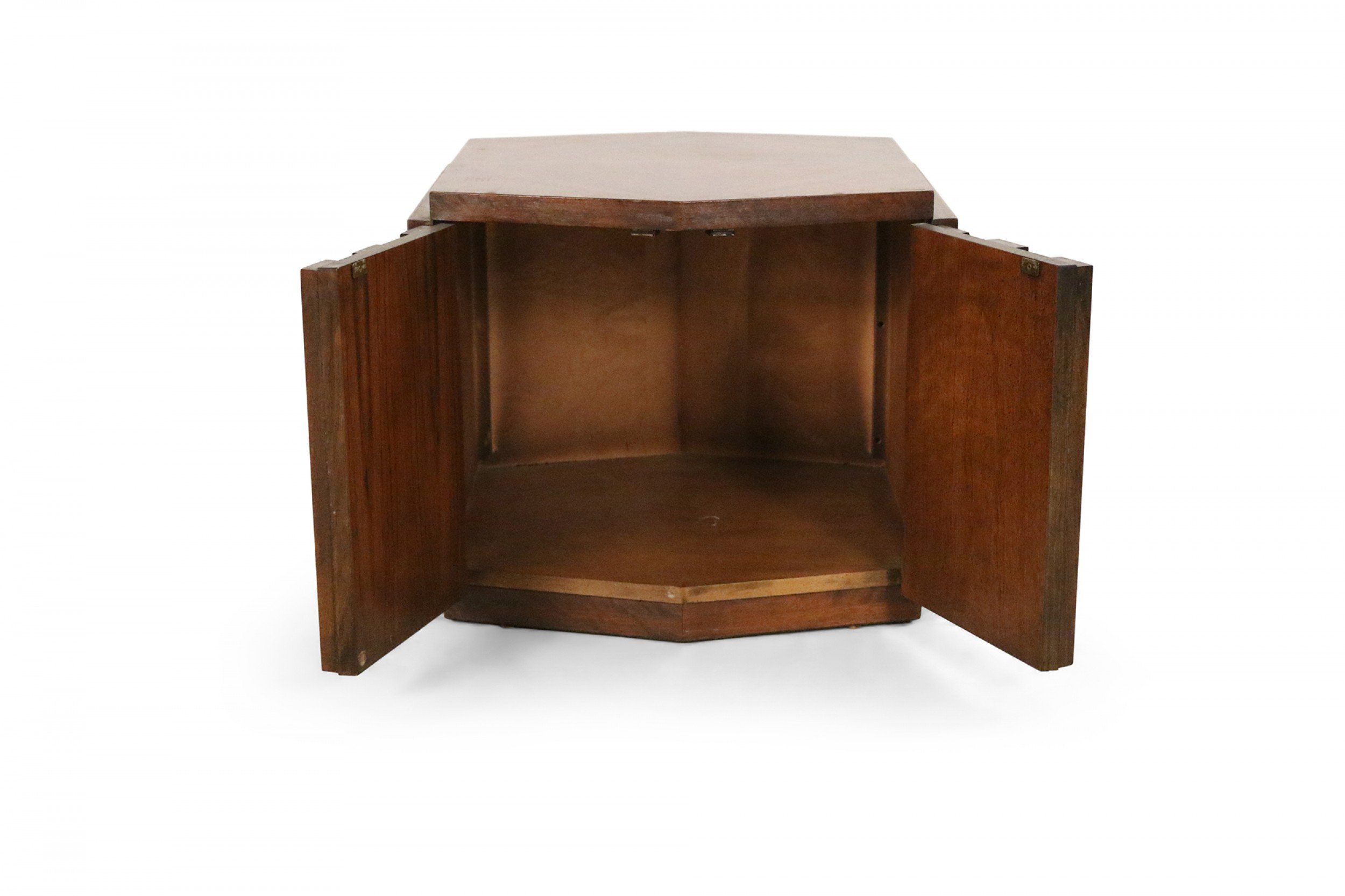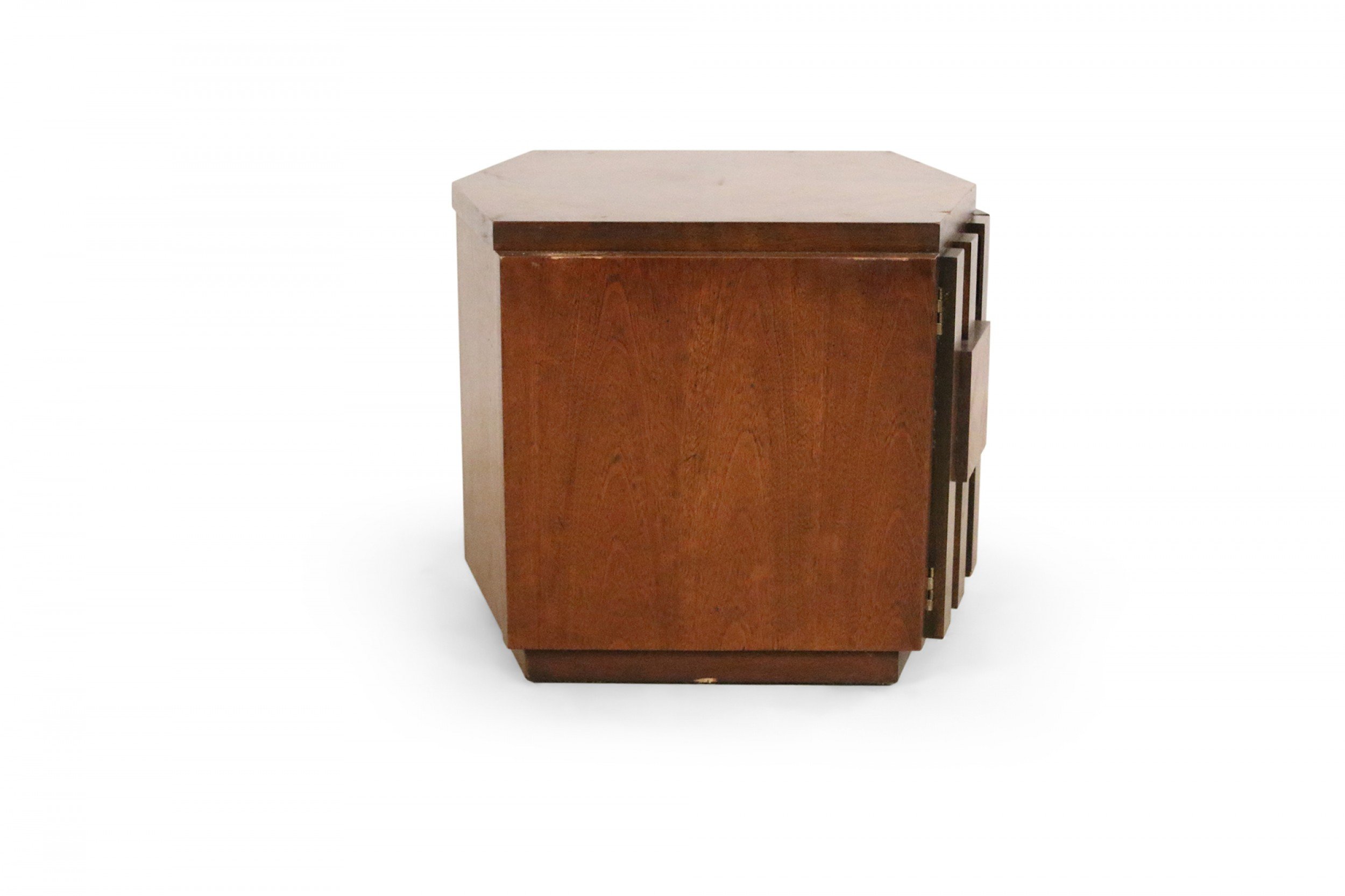 Lane Mid-Century Walnut Hexagonal Side Top Table Cabinet
