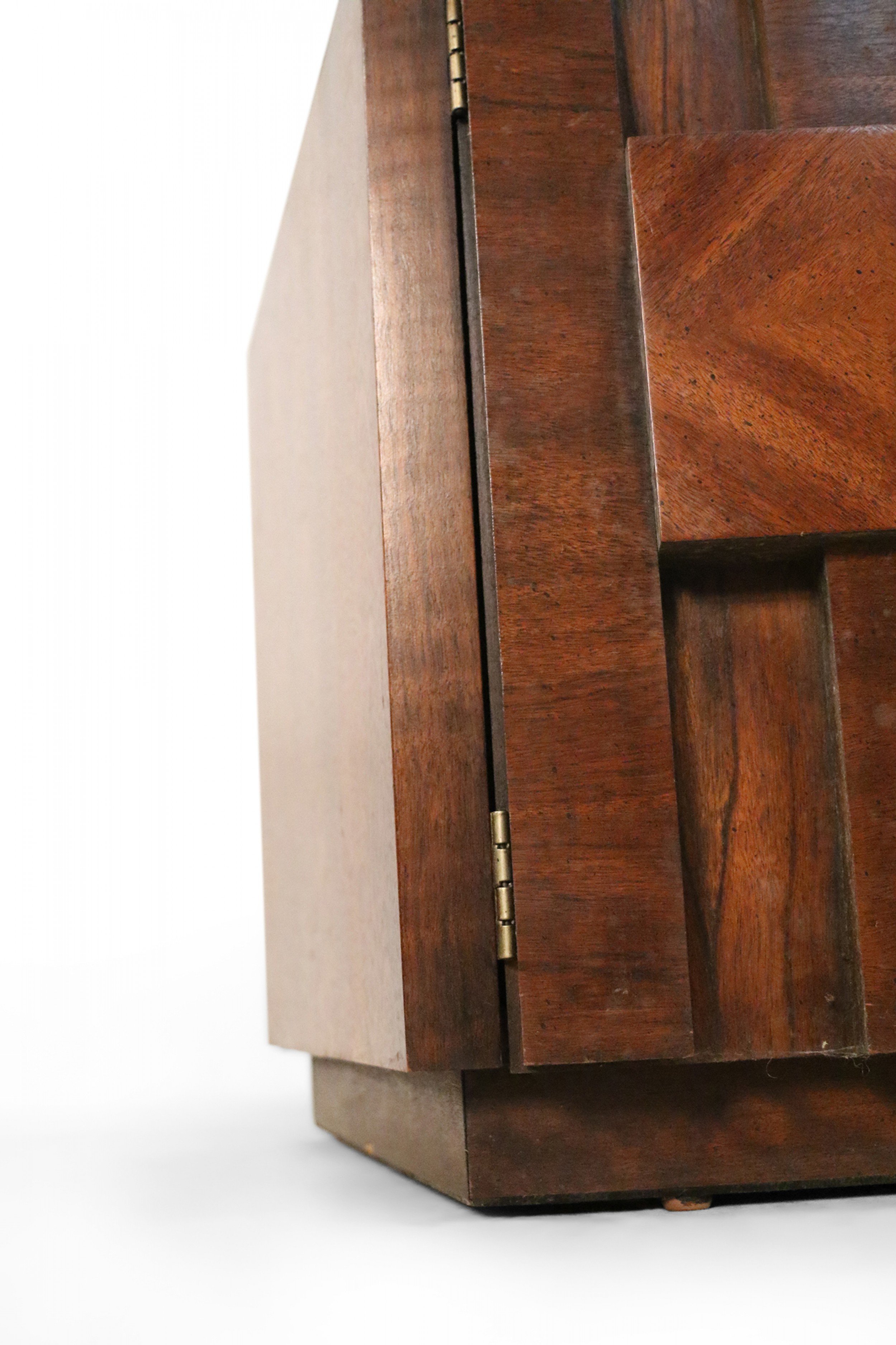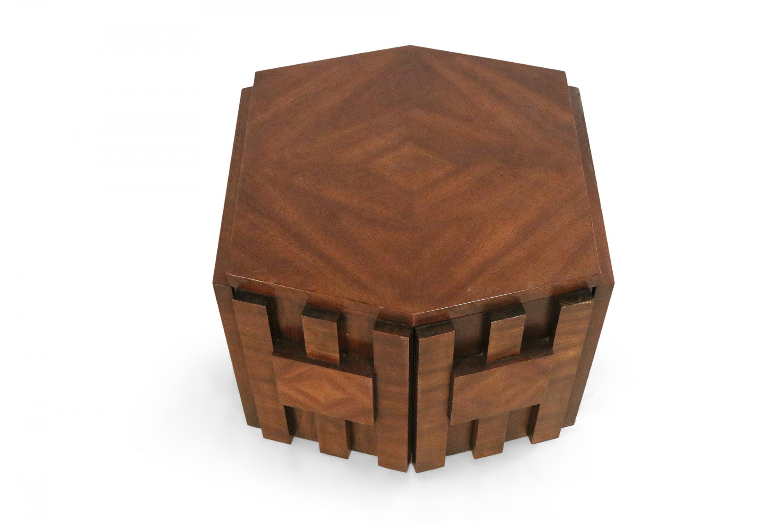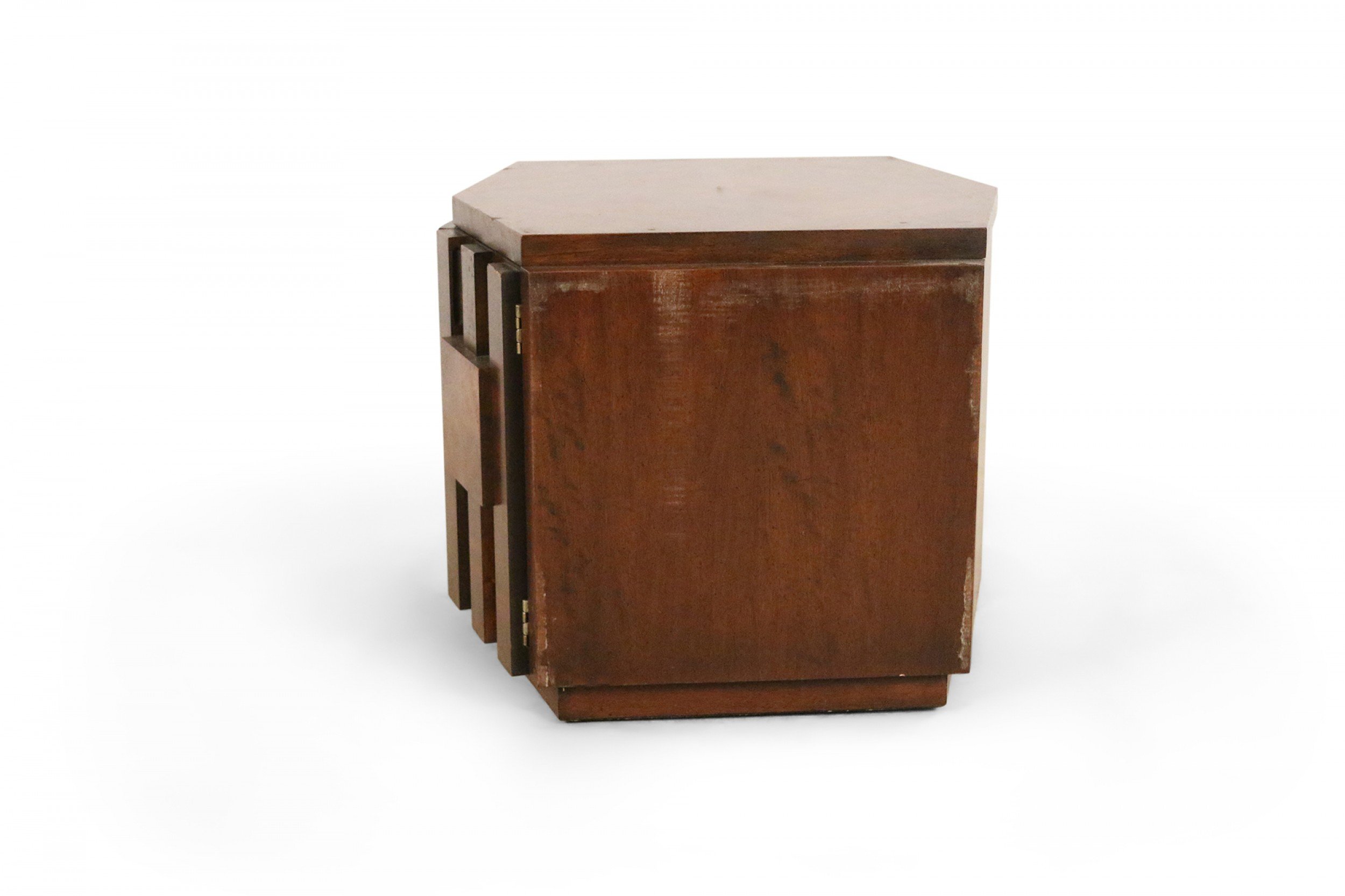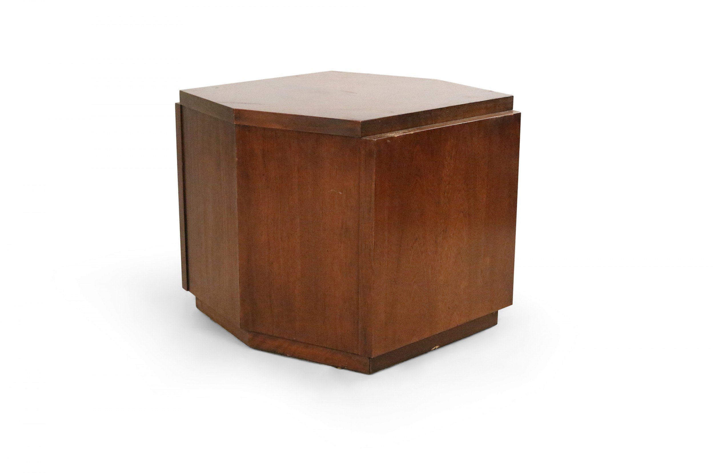 Lane Mid-Century Walnut Hexagonal Side Top Table Cabinet