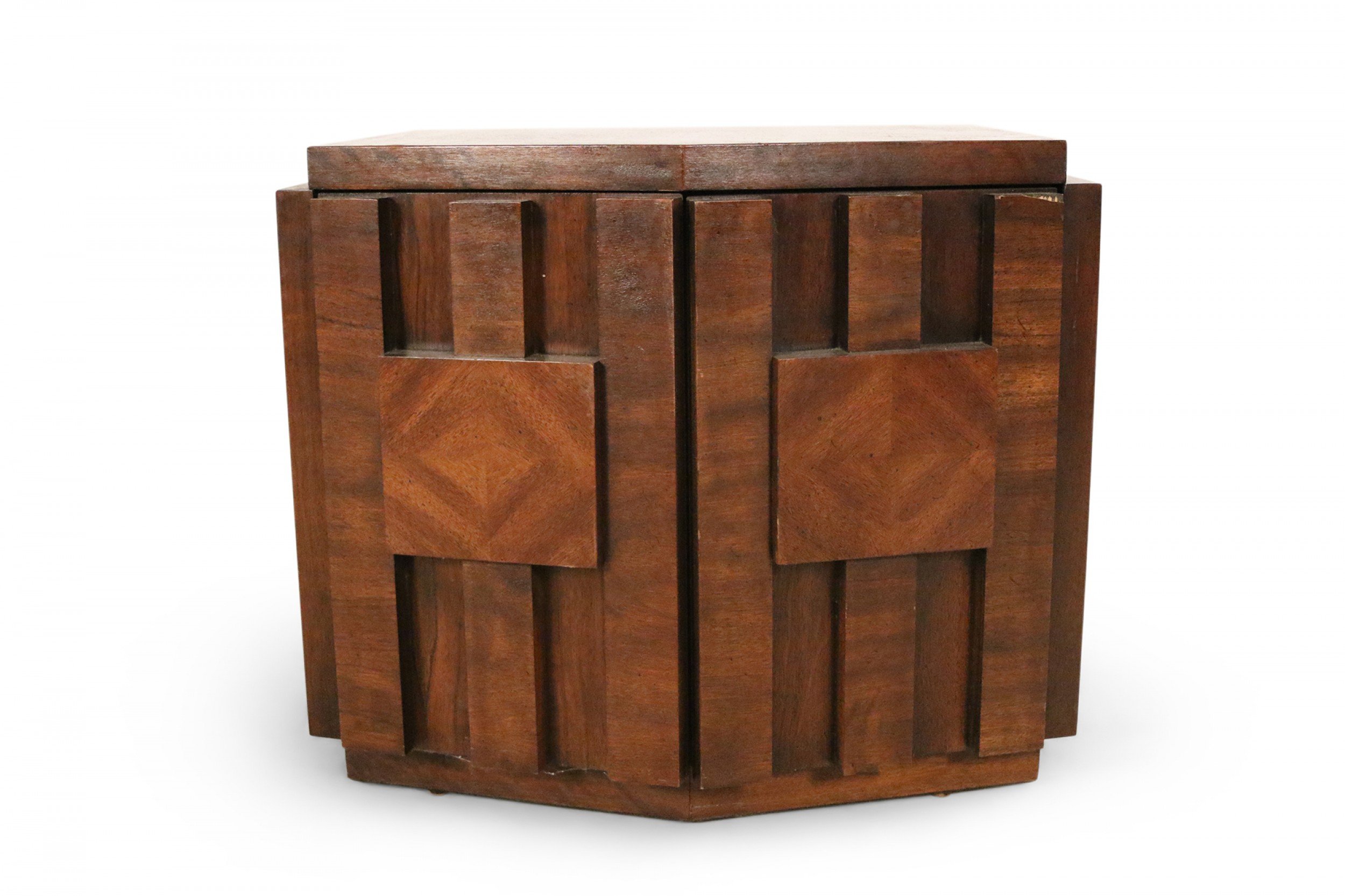 Mid-Century square hexagonal top side table cabinet with geometric front panel design (LANE) (Related item: NWL114)..