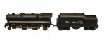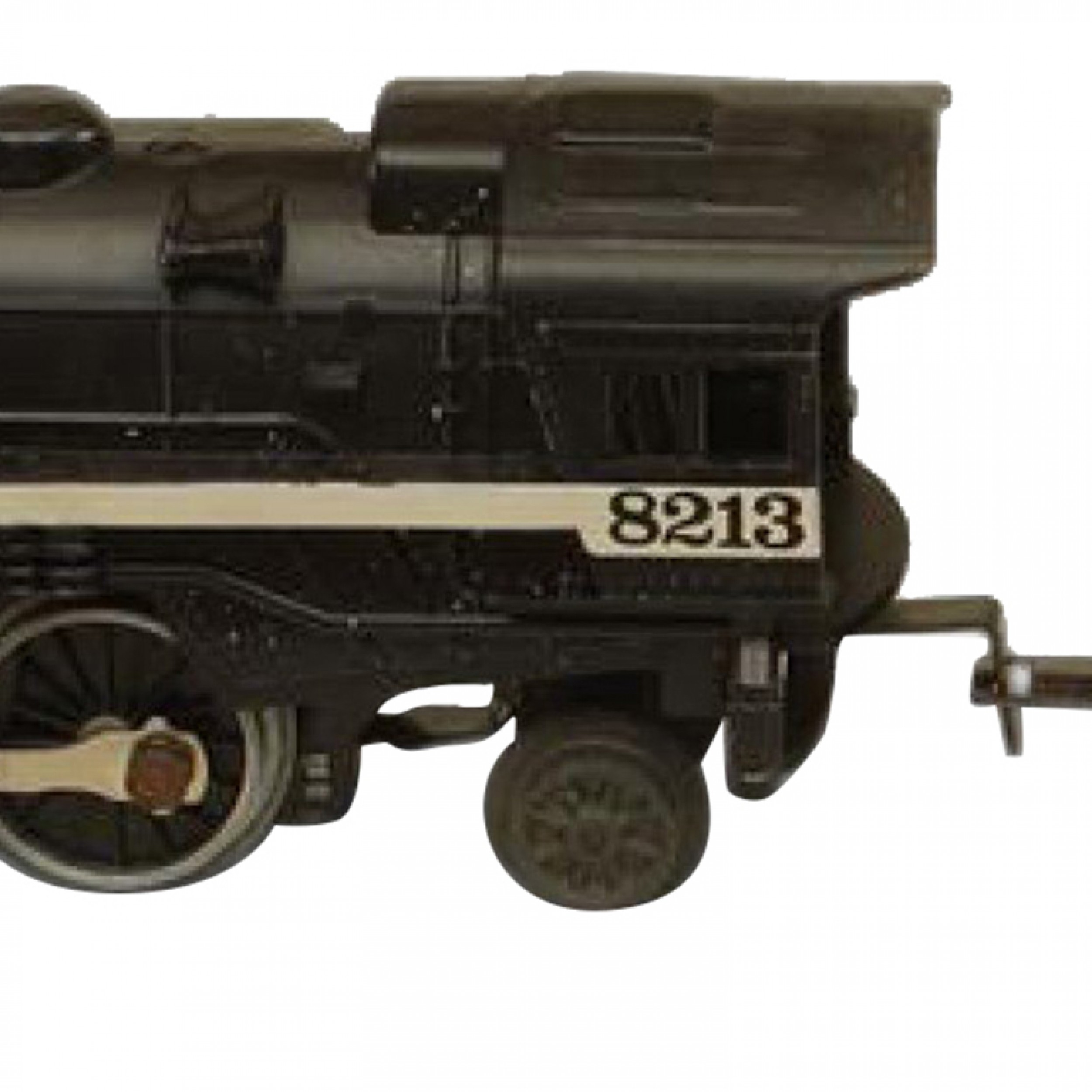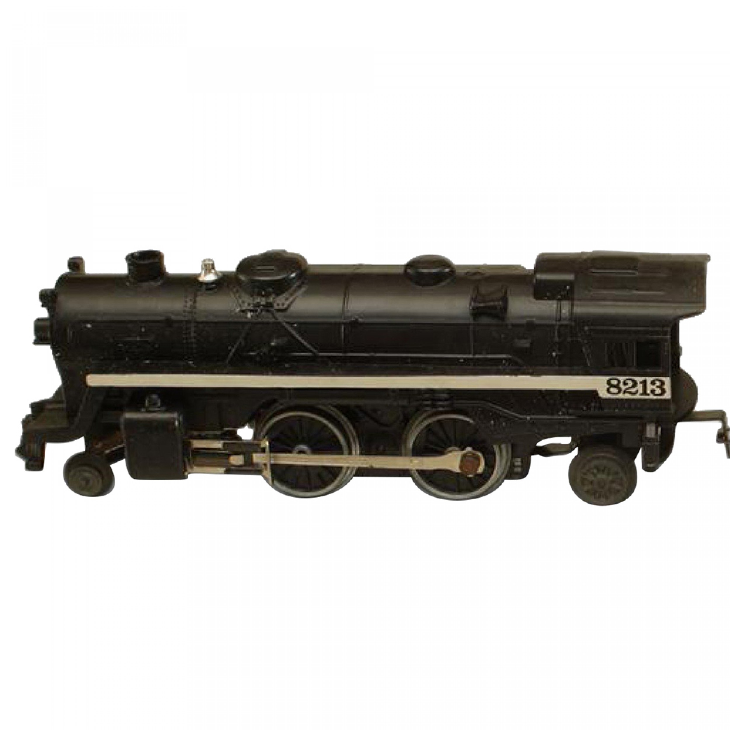 American 1950s Lionel model l# 8213 locomotive with 4 large wheel and a companion coal car (Rio Grande).