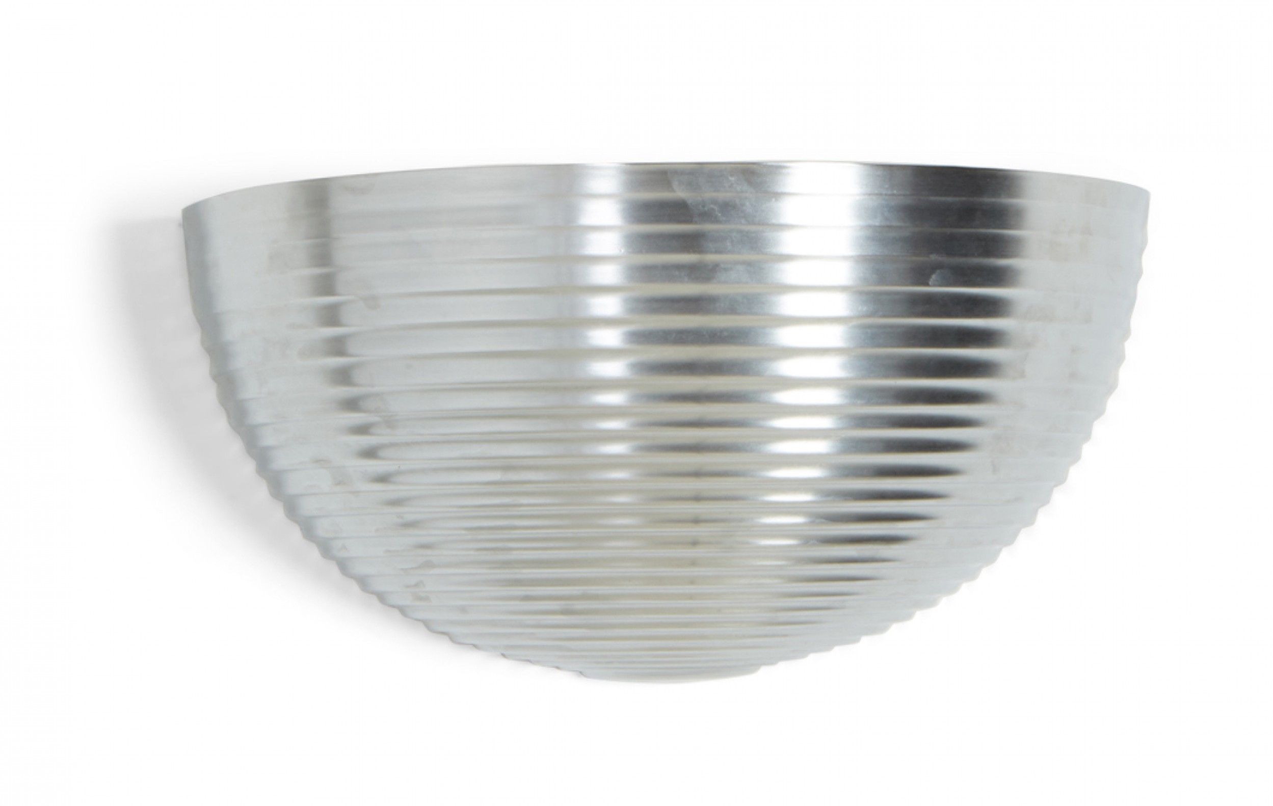 5 Mid-Century silver metal wall sconces with a half-circle bowl design and a horizontally ribbed tapered pattern. (PRICED EACH).