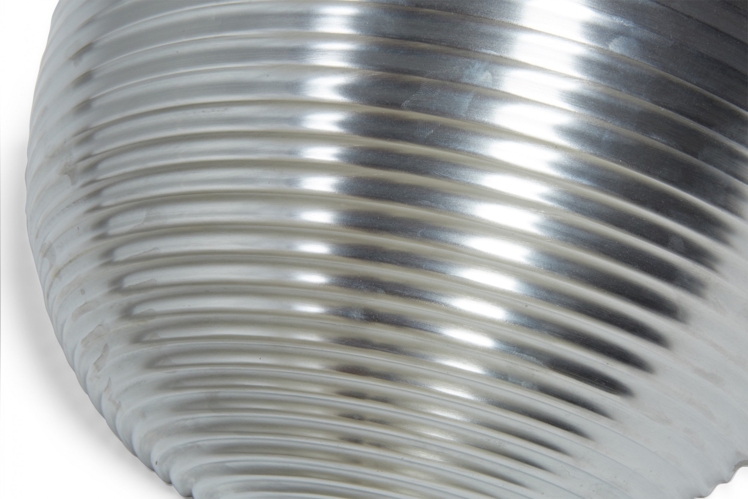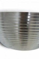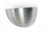 5 Mid-Century silver metal wall sconces with a half-circle bowl design and a horizontally ribbed tapered pattern. (PRICED EACH)