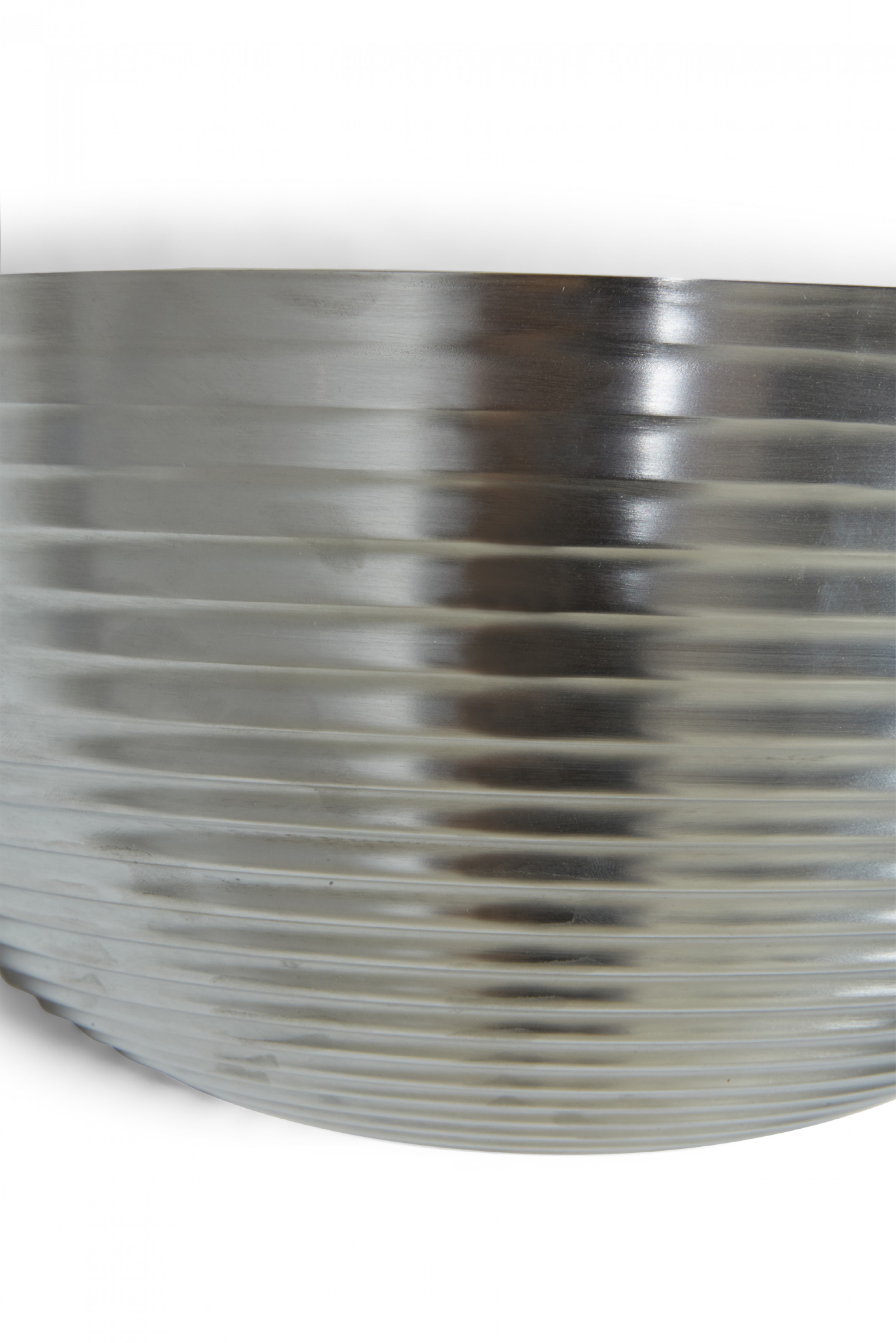 Mid-Century Ribbed Silver Metal Half-Circle Bowl Sconces