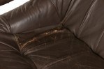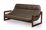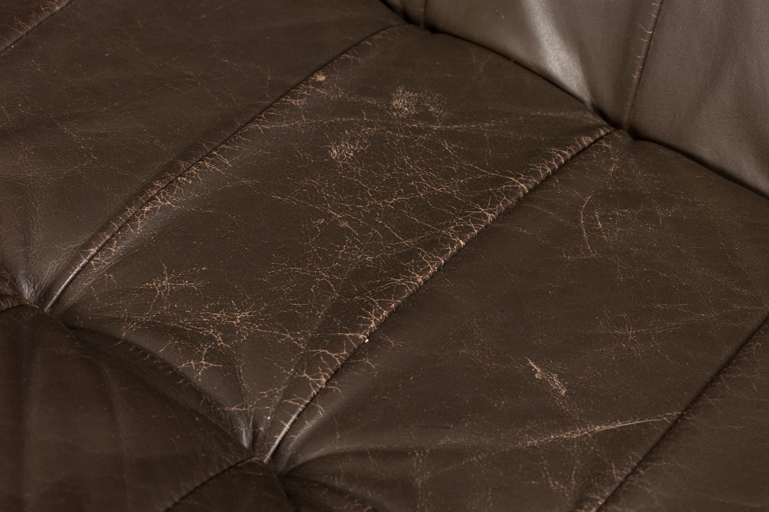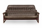 Mid-Century Scandinavian style Tufted Brown Leather Upholstered Sofa on Rectilinear Wooden Frame