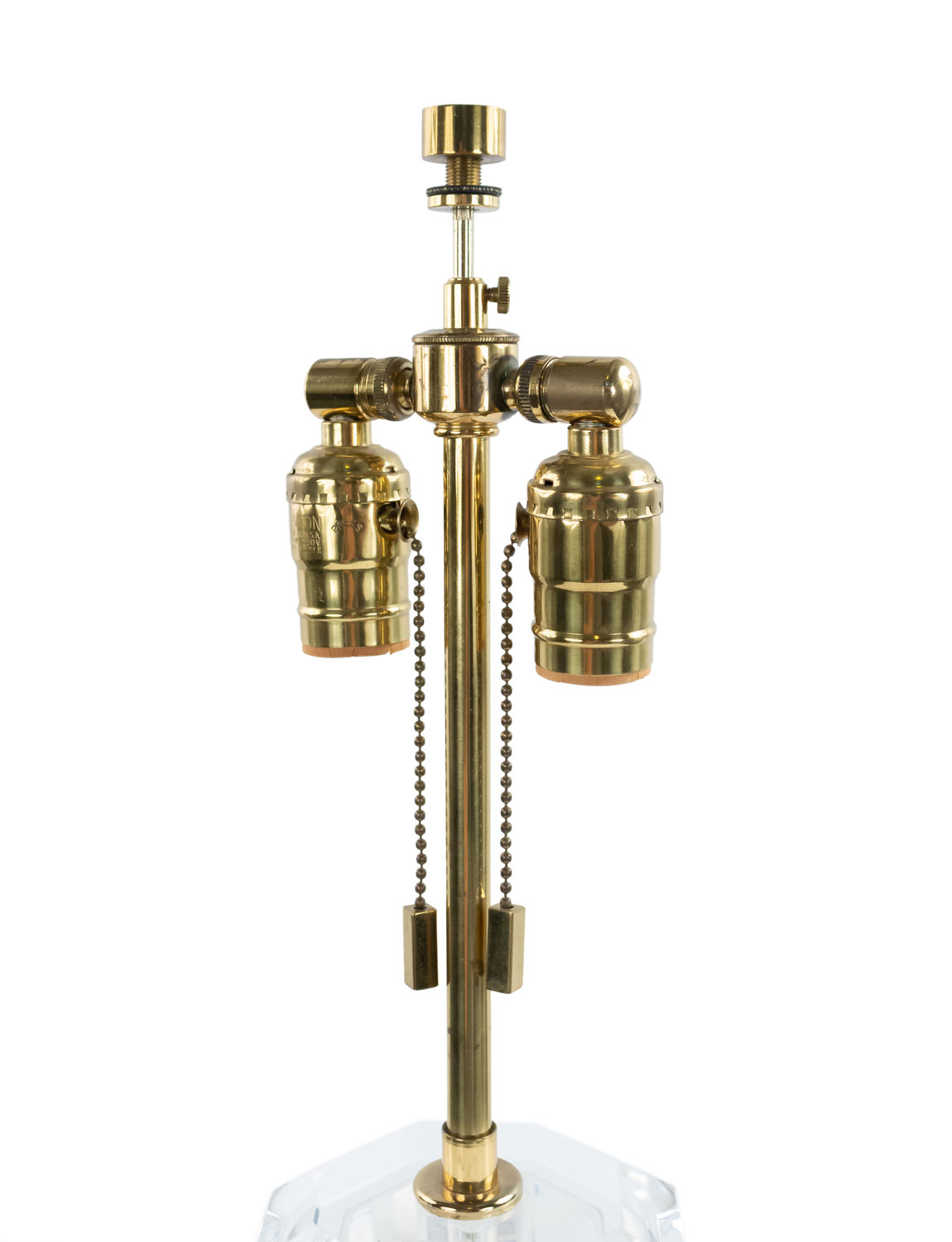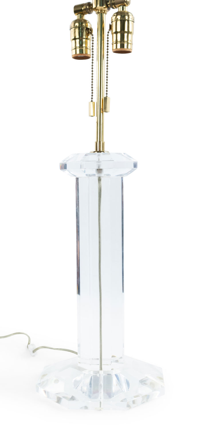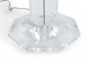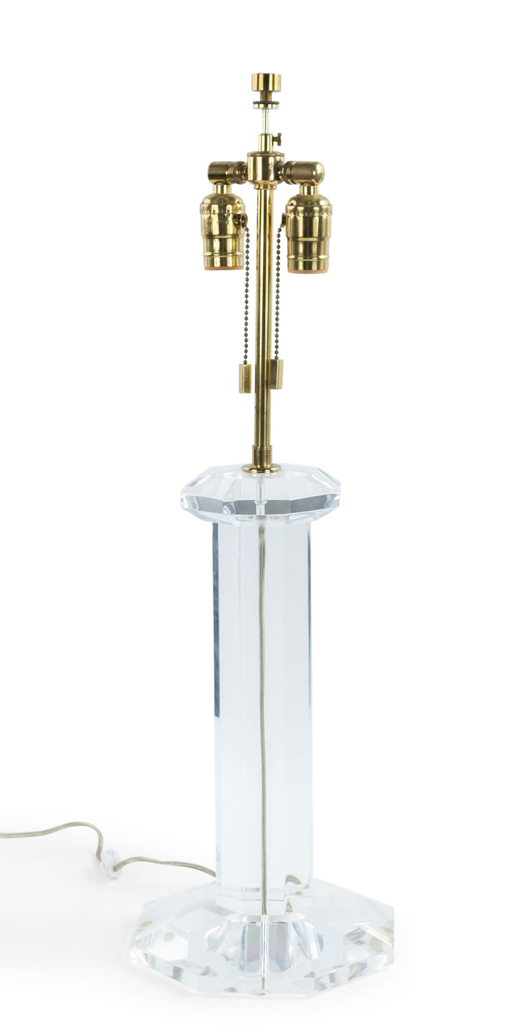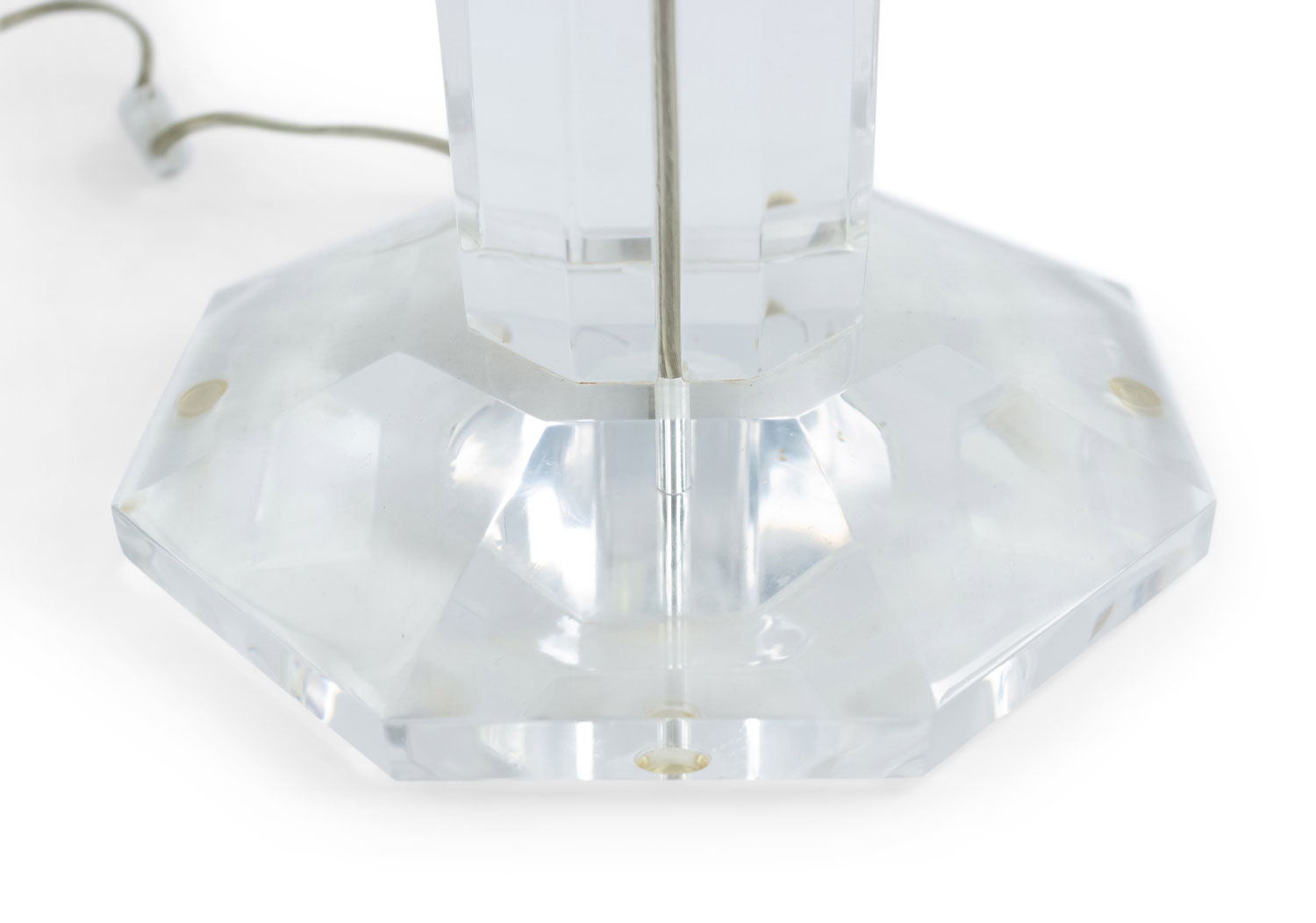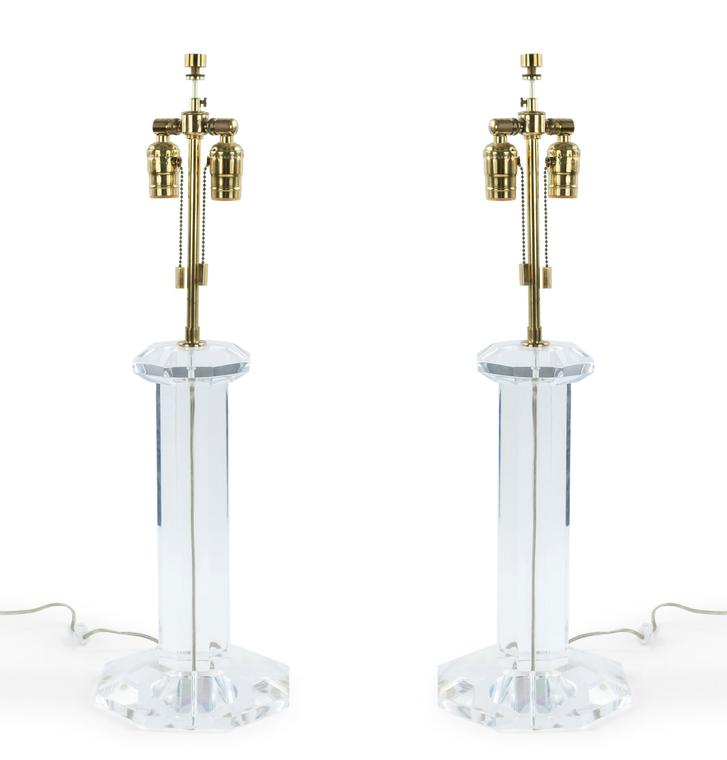 PAIR of American 1960s Lucite table lamps with a large octagonal base supporting an 8-sided column (signed: KARL SPRINGER) (PRICED AS PAIR)..