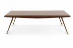 American Mid-Century rectangular walnut coffee table with brass legs (T.H. ROBSJOHN-GIBBINGS, model 1786 for Widdicomb).