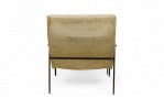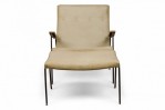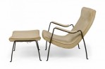 Milo Baughman American Mid-Century Beige Leather and Iron Armchair and Ottoman Set