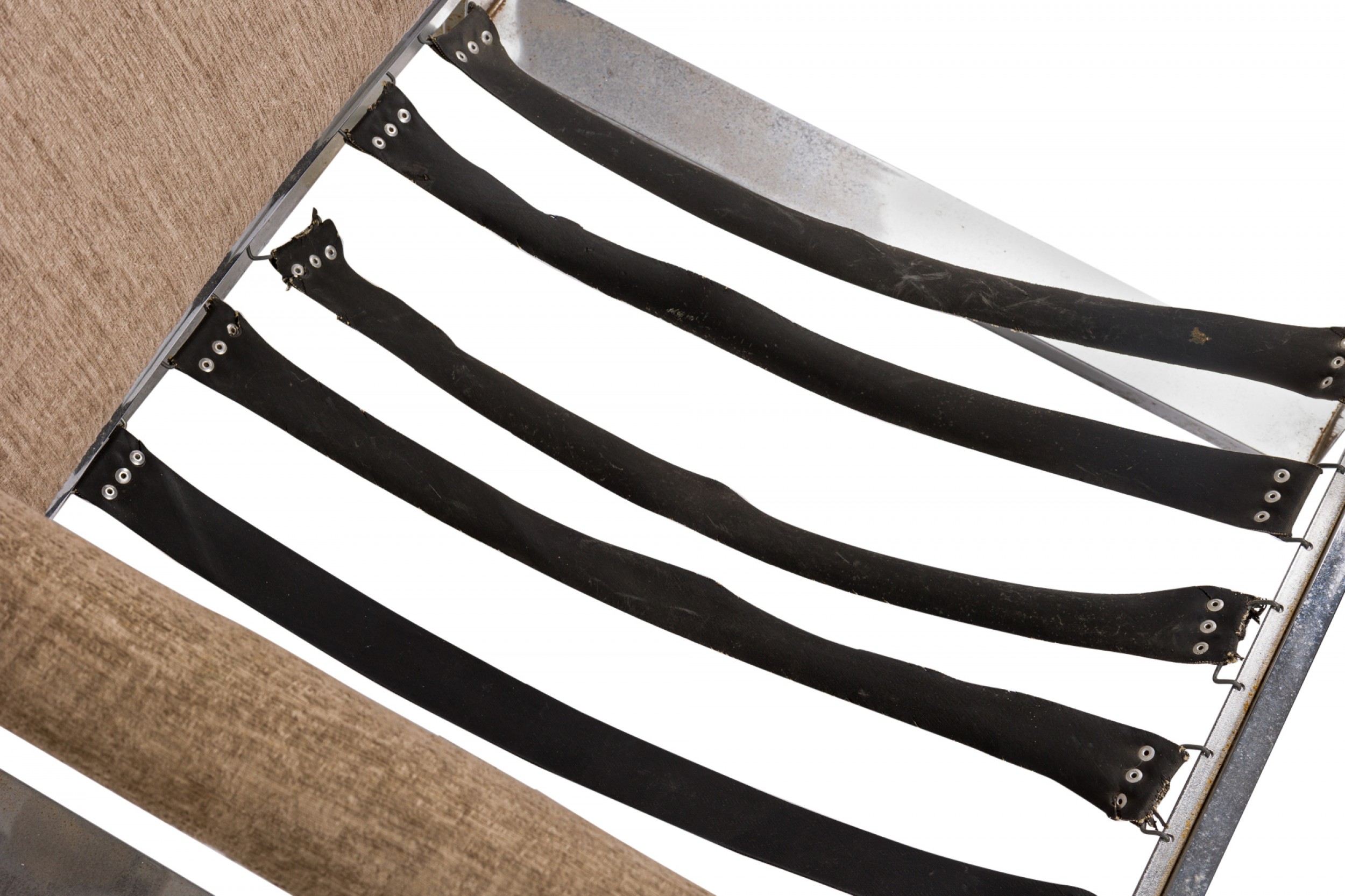 Style: Mid-Century Materials & Techniques: Chrome, fabric, metal, upholstered Category: Seating Good; Wear consistent with age and use