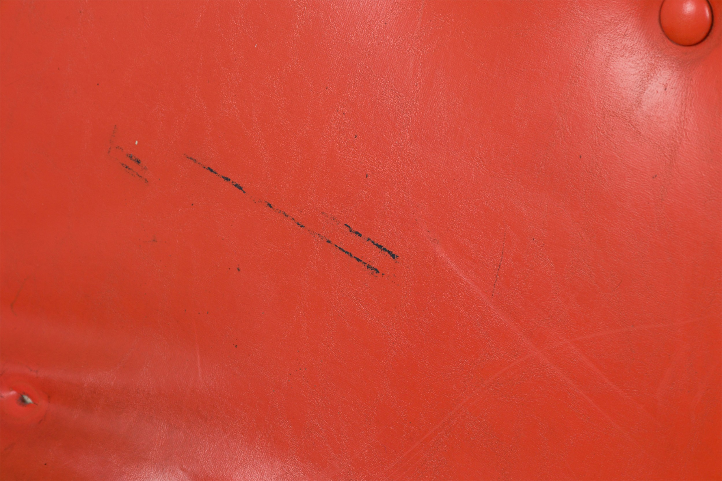 Milo Baughman American Mid-Century Orange Tufted Vinyl Upholstery and Iron Scoop Lounge / Side Chair