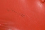 Style: Mid-Century Materials & Techniques: Iron, metal, upholstered, vinyl Category: Seating Condition: Scuffing to upholstery. Good; Wear consistent with age and use
