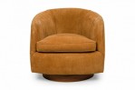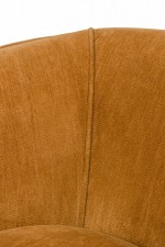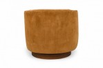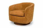 American Mid-Century horseshoe-form lounge / armchair upholstered in light brown velour, resting on a circular wood veneer plinth base. (MILO BAUGHMAN FOR THAYER COGGIN)(Similar pieces: DUF0615,DUF0617).
