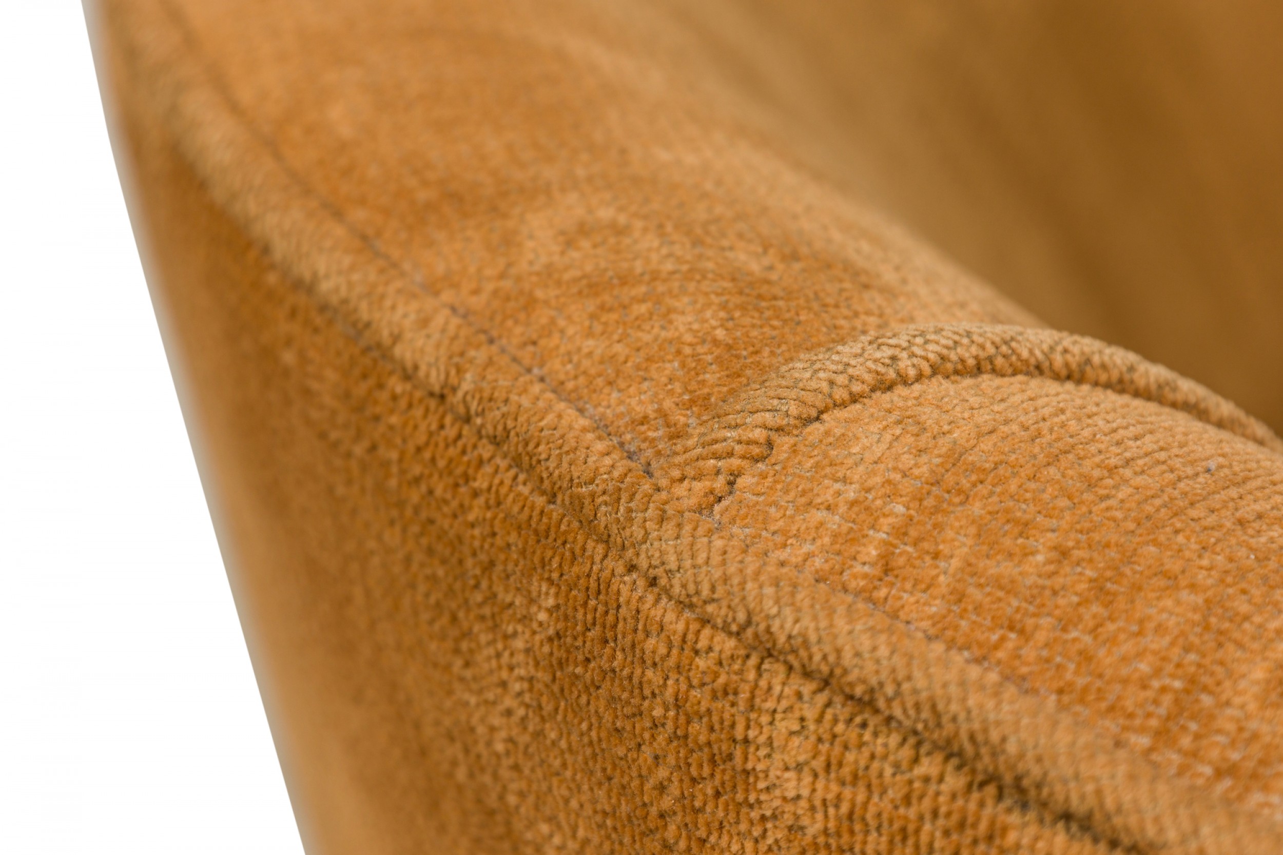 Style: Mid-Century Materials & Techniques: Fabric, upholstered, velour, wood Category: Seating Good; Wear consistent with age and use