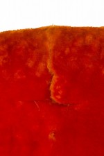 Style: Mid-Century Materials & Techniques: Tufted, upholstered Category: Seating Condition: Triangular tear in back upholstery, some staining to seat, faint black mark on left arm upholstery. Good; Minor fading