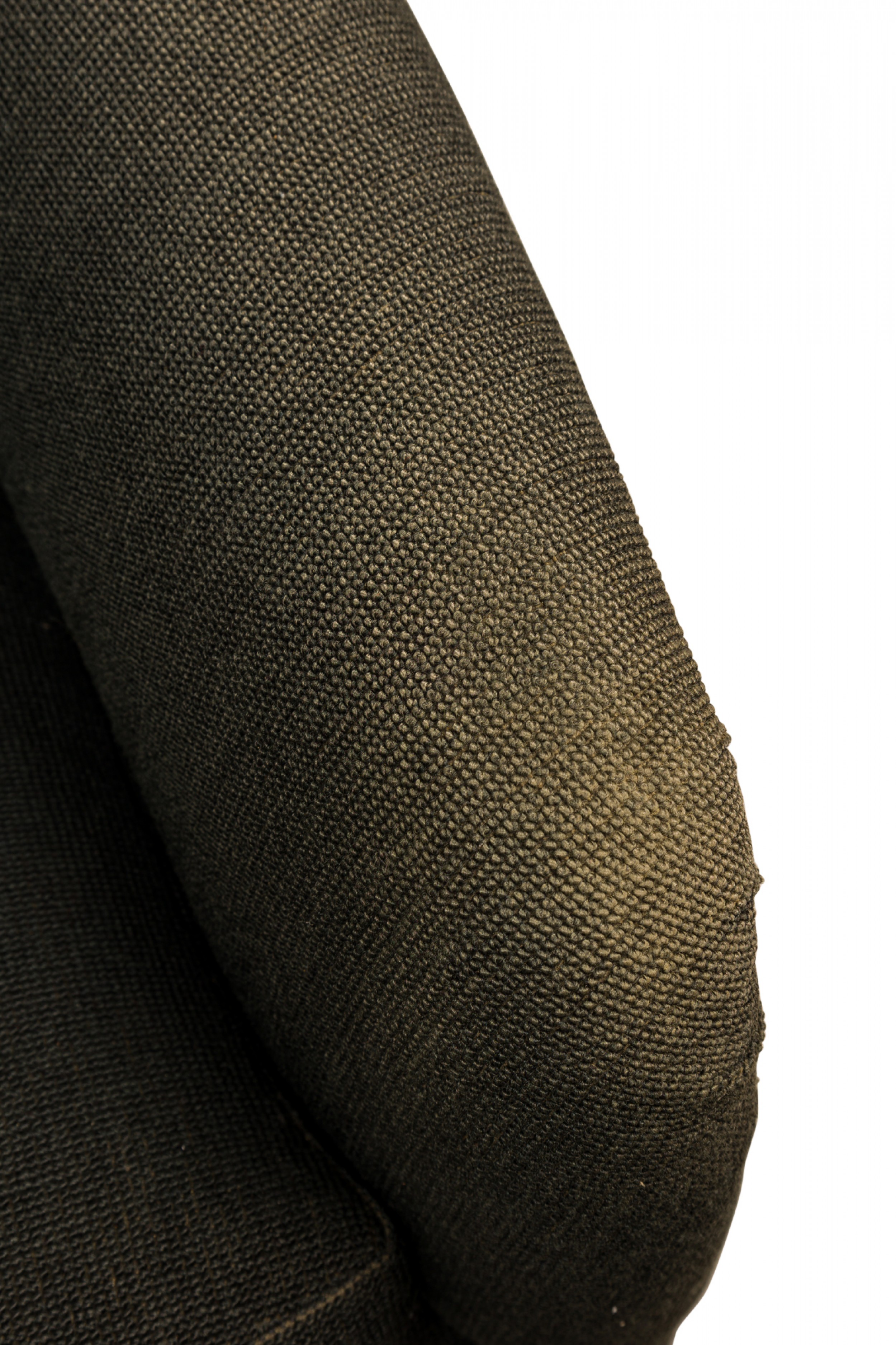 Style: Mid-Century Materials & Techniques: Fabric, rosewood, upholstered, wood Category: Seating Good; Wear consistent with age and use