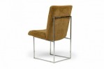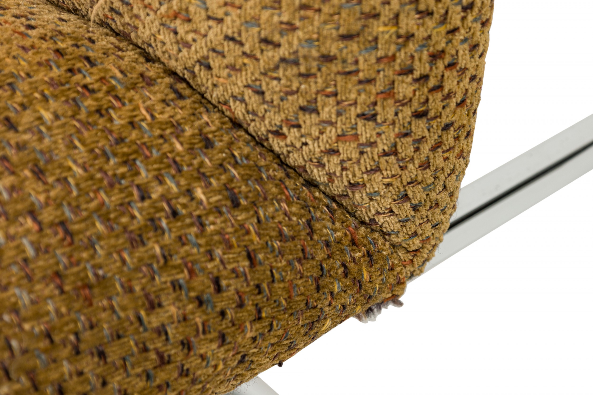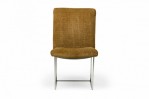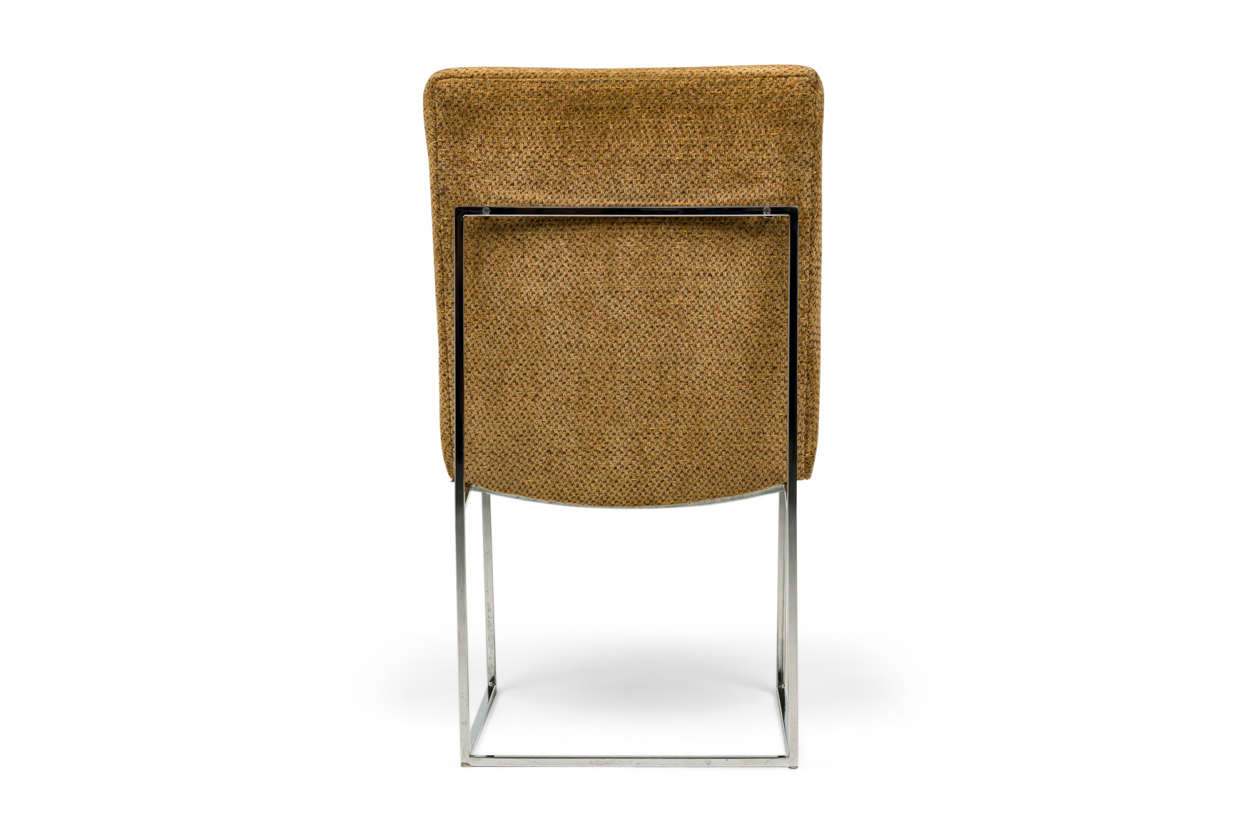 American Mid-Century 'Captain' dining side chair with a silver metal square tube frame and brown woven fabric upholstery with multi-colored accent thread. (MILO BAUGHMAN FOR THAYER COGGIN)(Other examples in different upholstery: DUF0798-DUF0801)