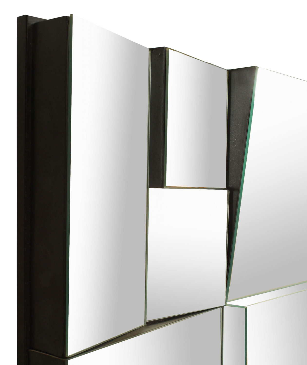 American Mid-Century Modern design cubist design multi-faced "Slopes" mirror supported in a matte black frame (NEAL SMALL-numbered: 19/951)