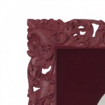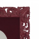Modern skull & crossbones wall mirror with Swarovski crystal embellishments, red velvet backing, and an ornate red filigree Louis XV-style frame. (THE QUICK AND THE DEAD-"Pirate Red No. 3", by GEOFFREY BRADFIELD) (Related items: BRA027, BRA028, BRA029)