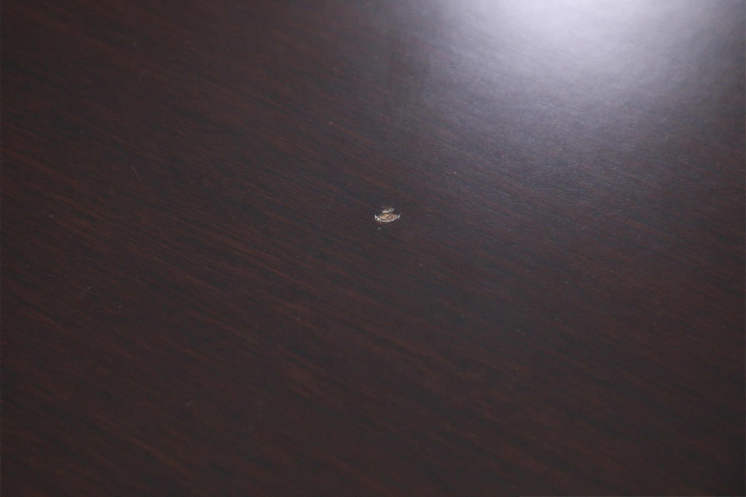 Style: Contemporary/Post-War Design Materials & Techniques: Metal, wood, steel, mahogany, natural Category: Tables Condition: Small chip on table top.
