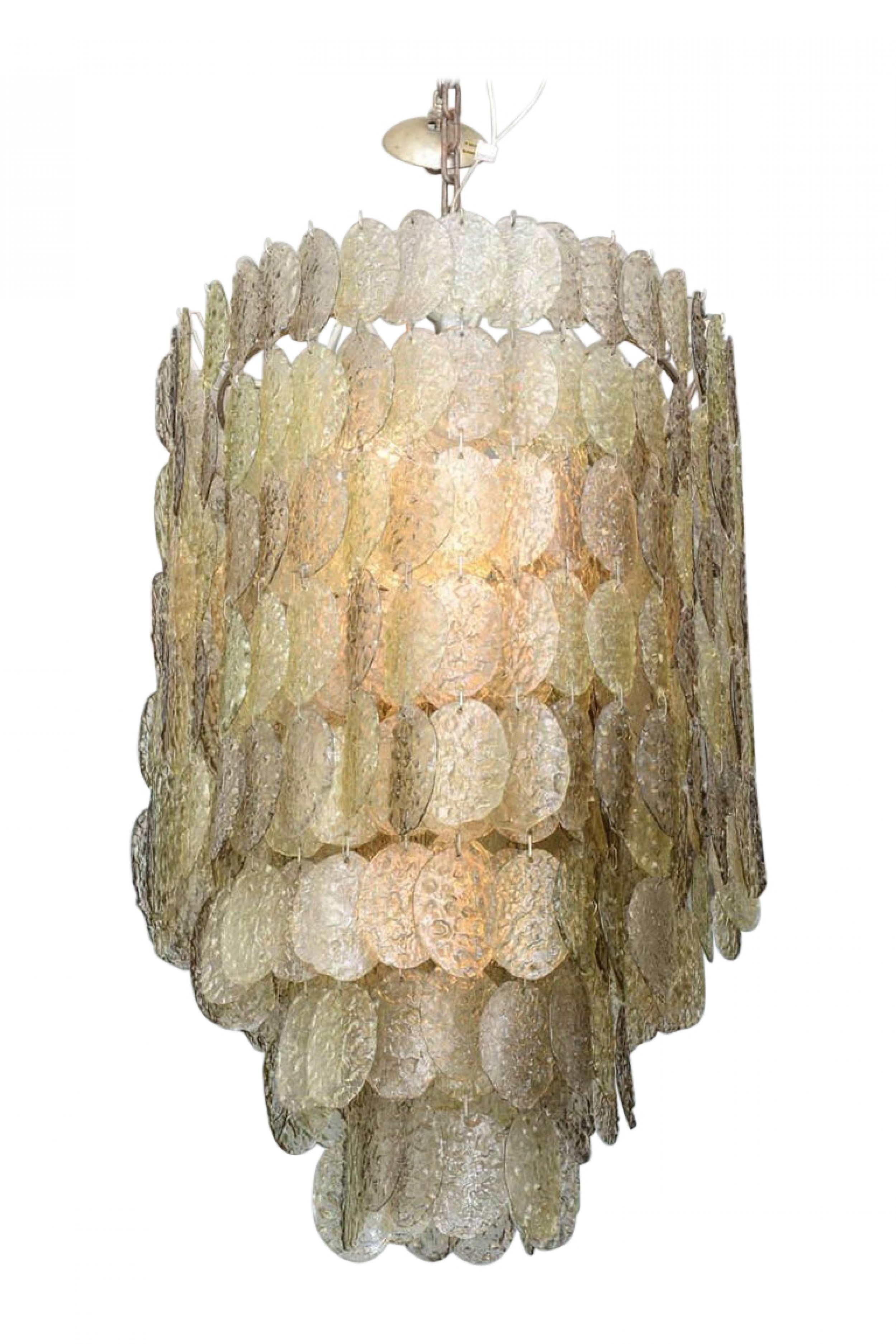 Monumental Italian Modern Amber Glass Chandelier by Mazzega