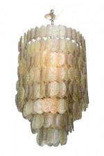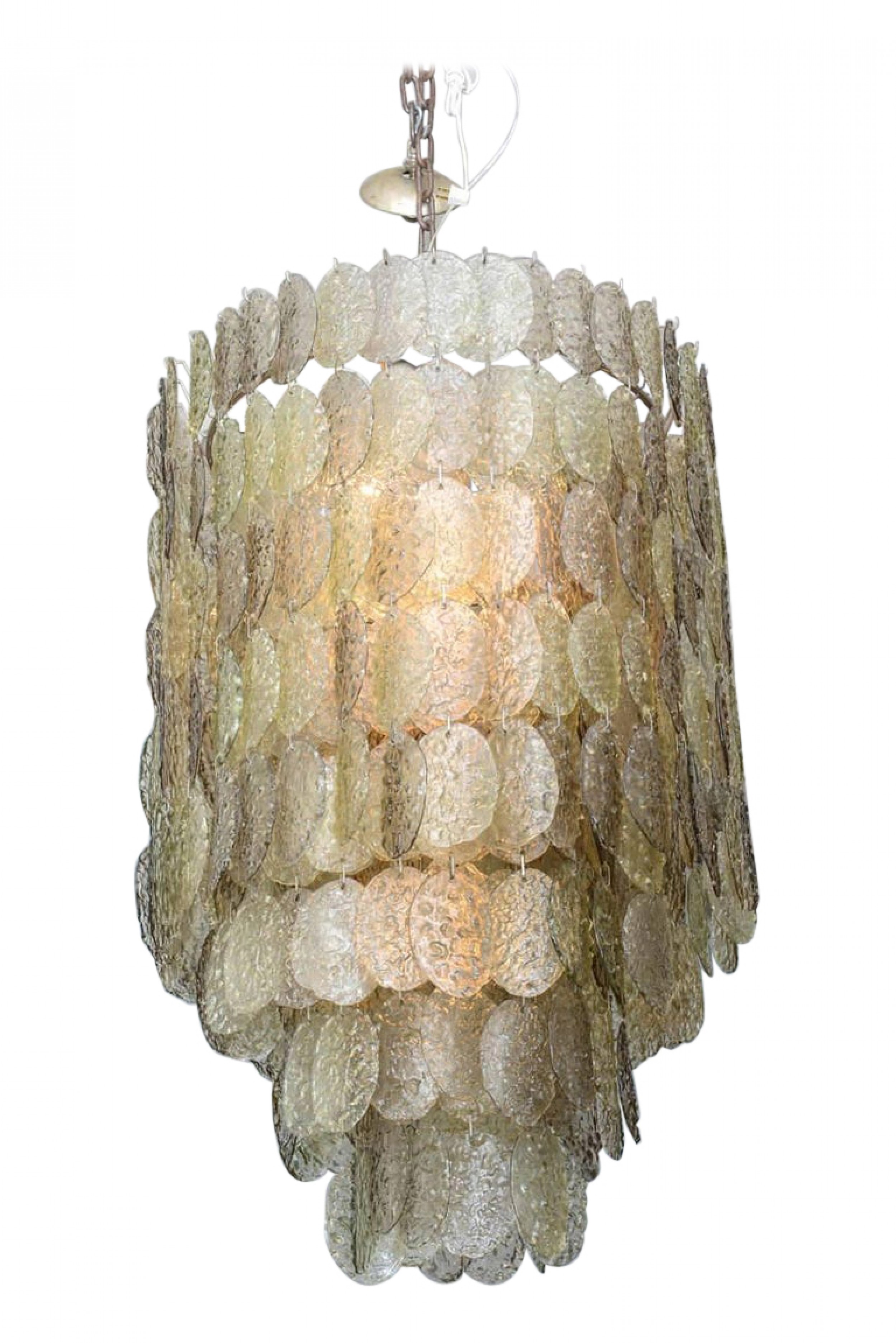 Monumental Italian Modern Amber Glass Chandelier by Mazzega.