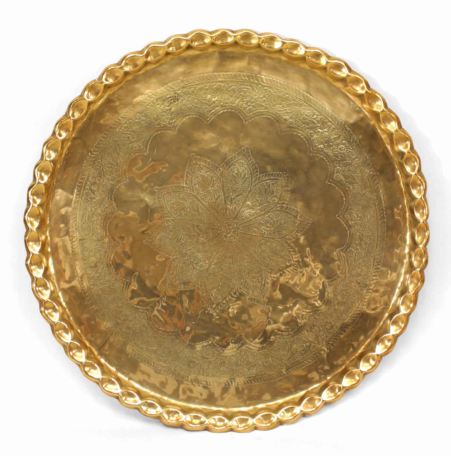 Moorish (19/20th Century) round brass tray with scalloped edge.