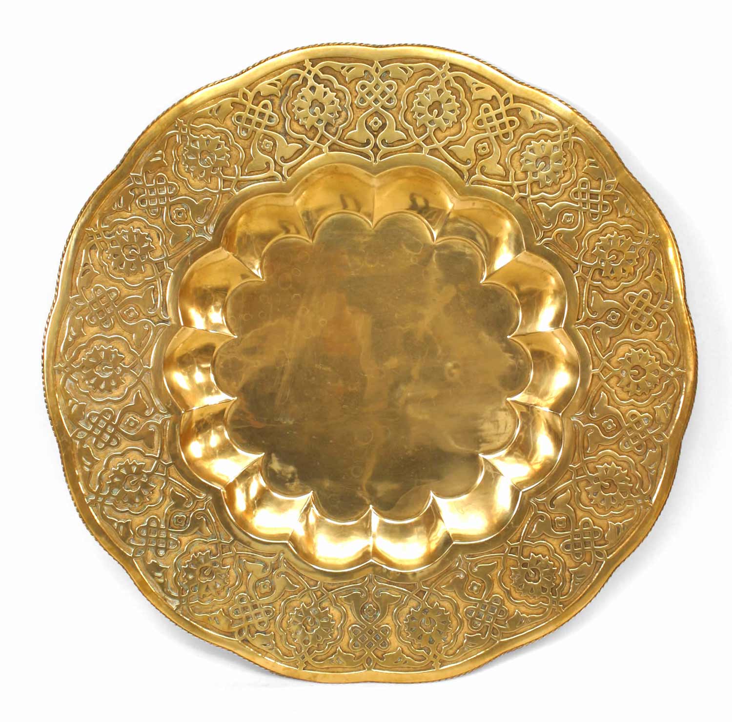 Moorish (19/20th Century) round brass tray with rope design edge..