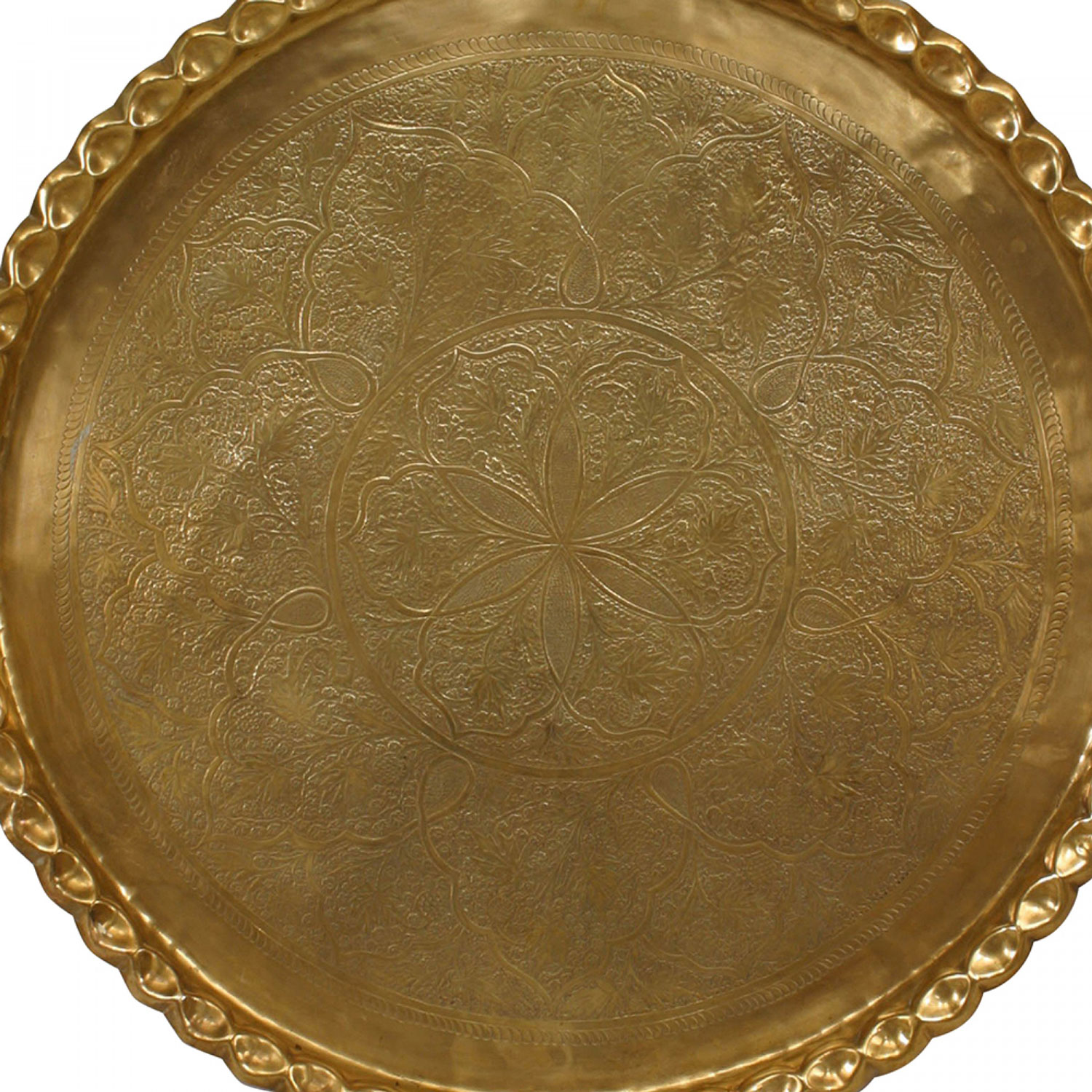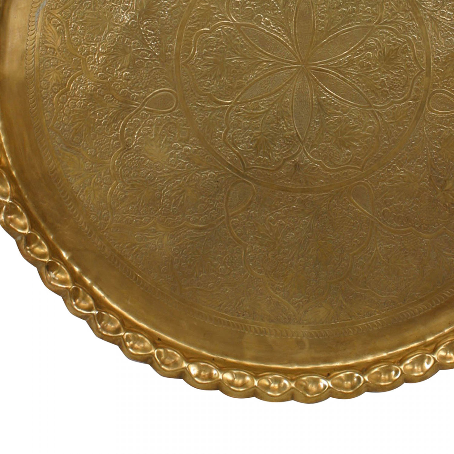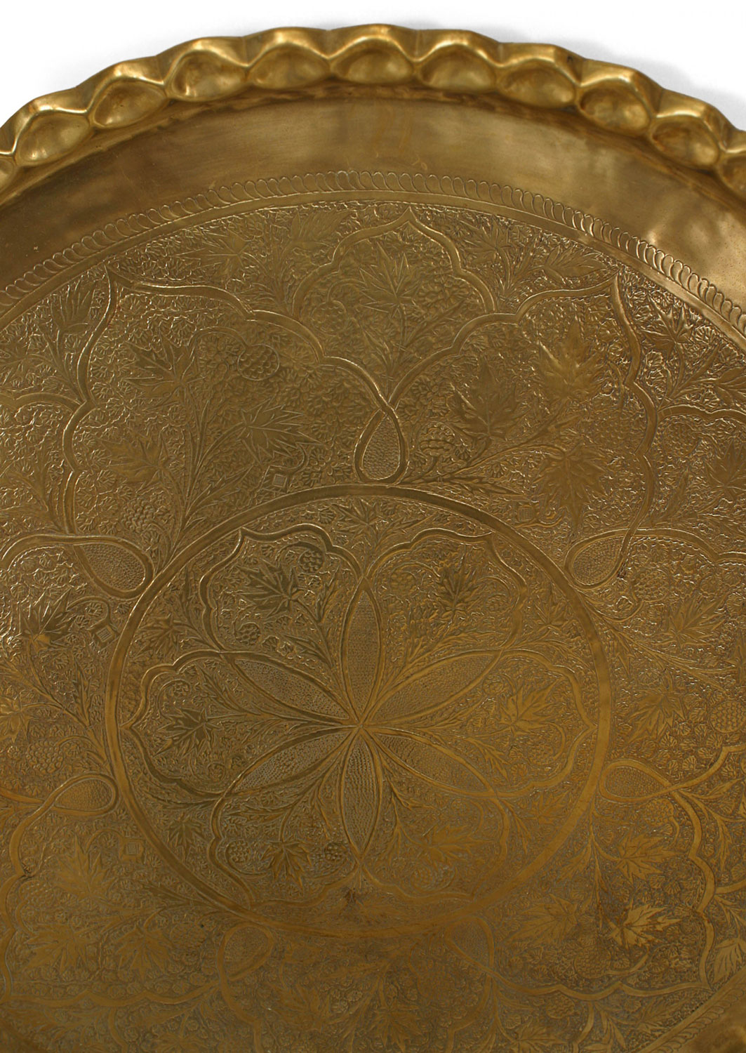 Moorish (19/20th Century) round brass tray with scalloped edge.