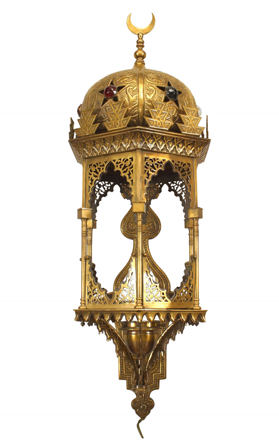 Middle Eastern Moorish Style Jeweled Gilt Wall Sconces