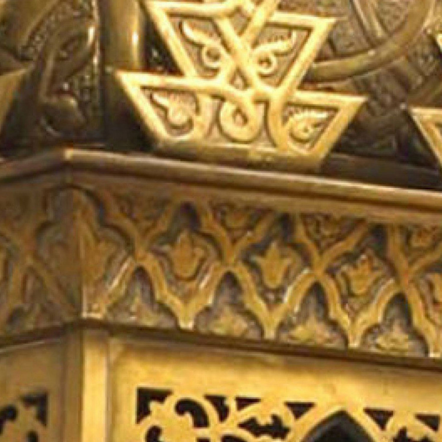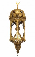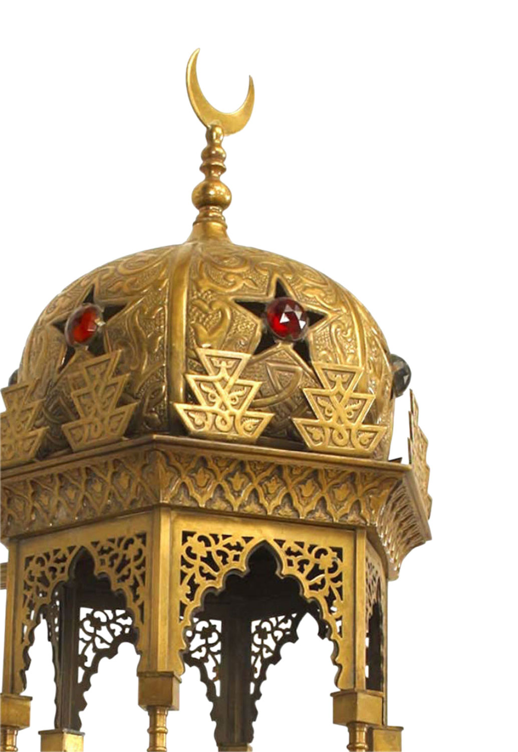 Style: Middle Eastern Materials & Techniques: Brass, embossed, glass Category: Lighting
