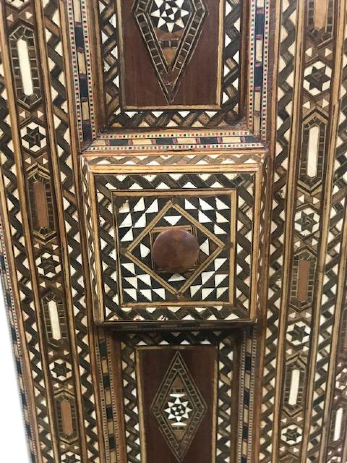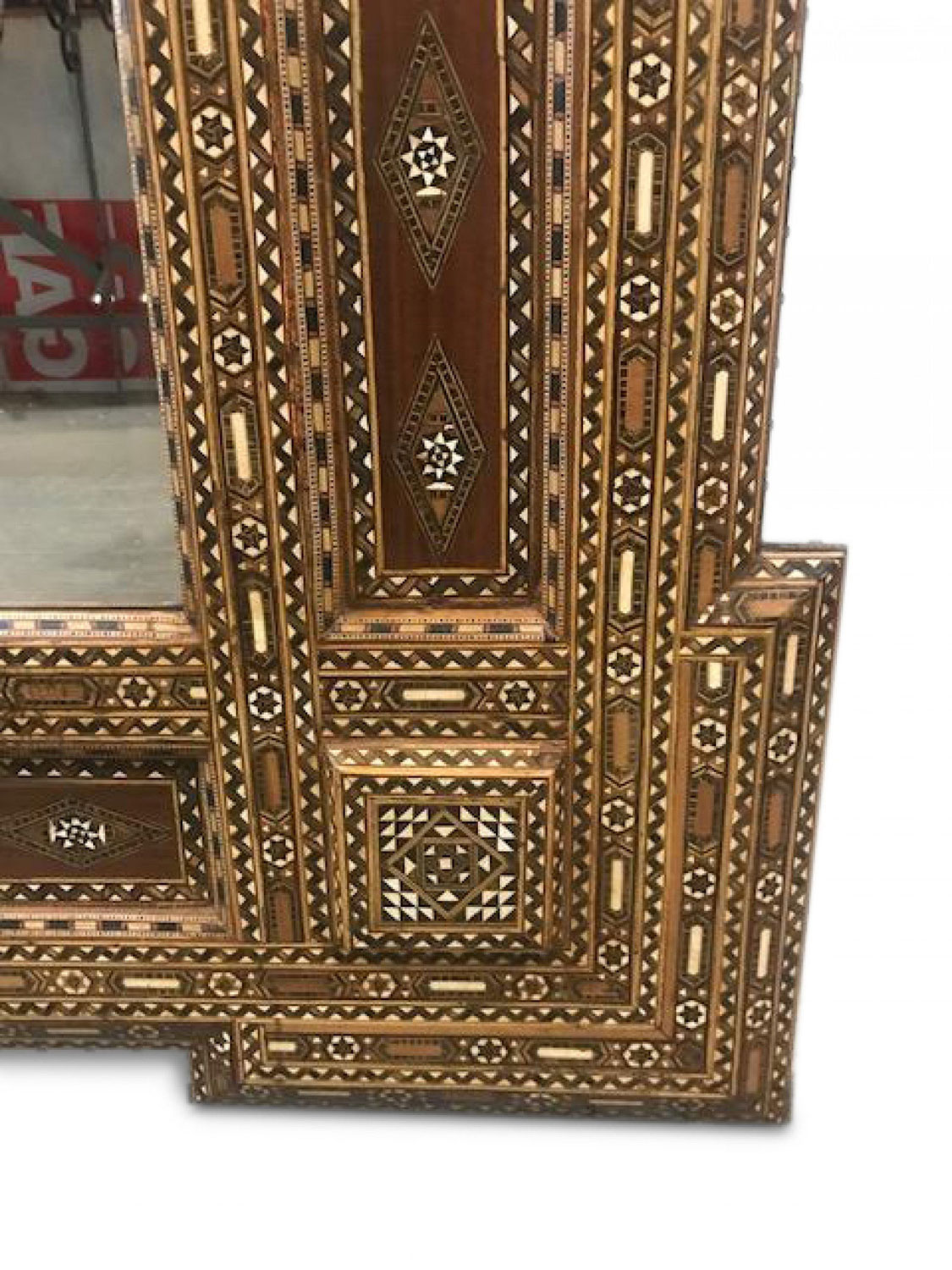 Style: Middle Eastern Materials & Techniques: Wood, inlaid, pediment Category: Mirrors