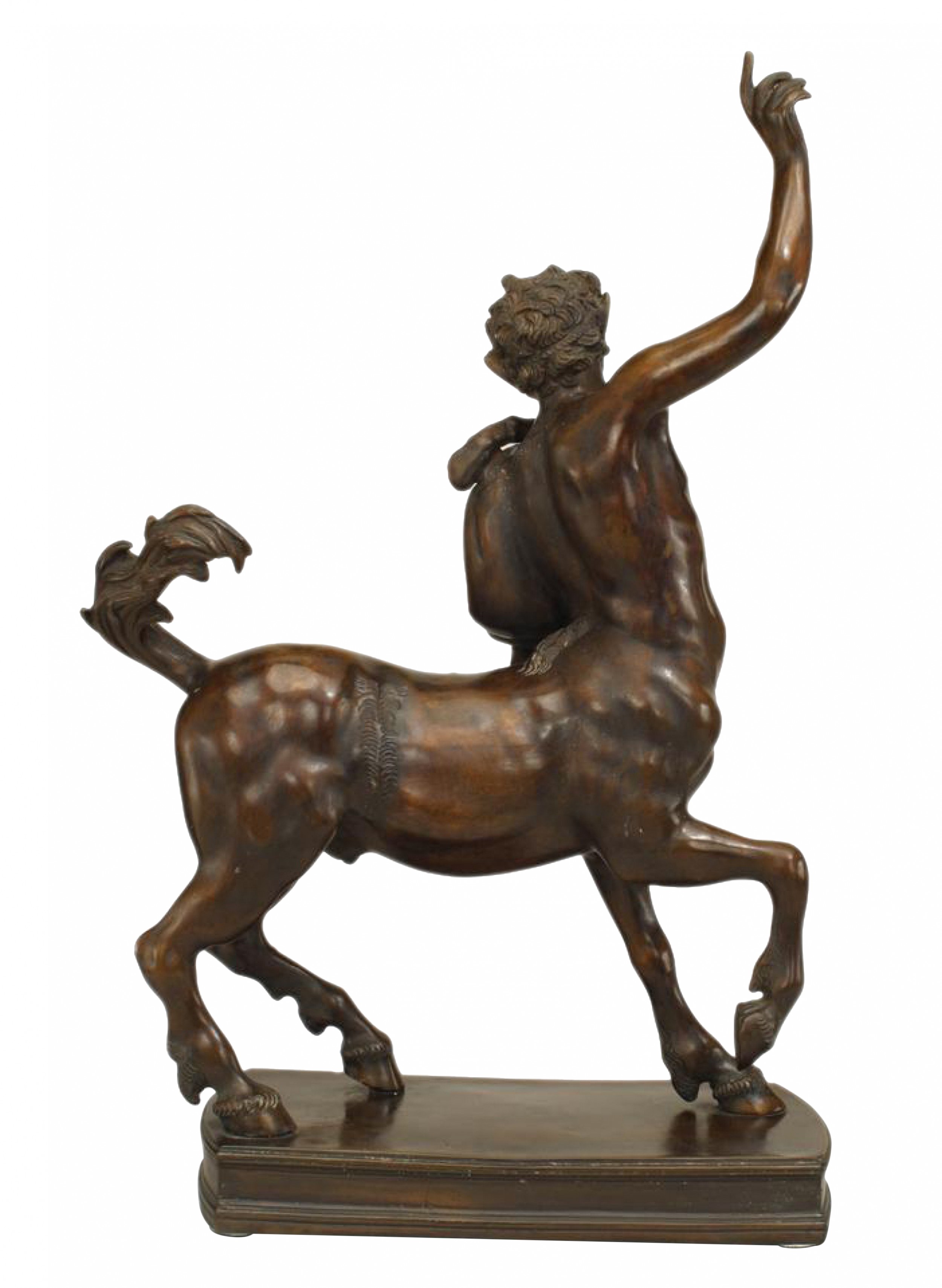Italian Neo-classic style (20th Cent) bronze figure of a Centaur with raised hand and holding a staff with a dark brown patina (similar to BAS012).