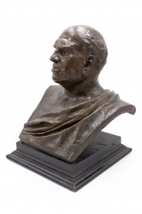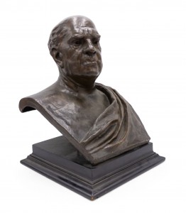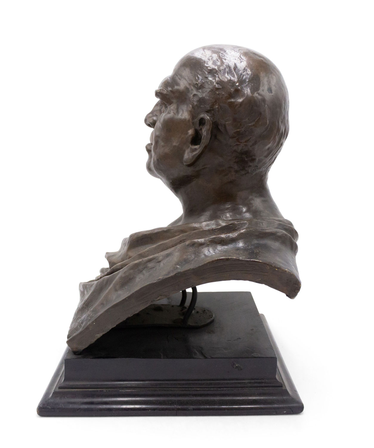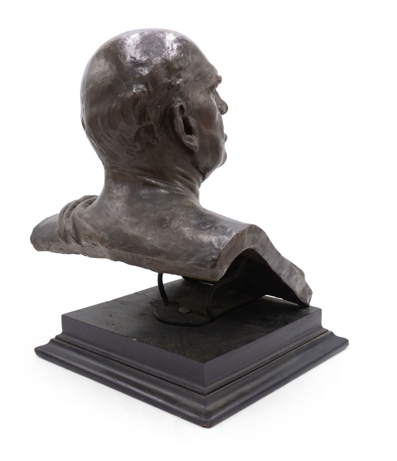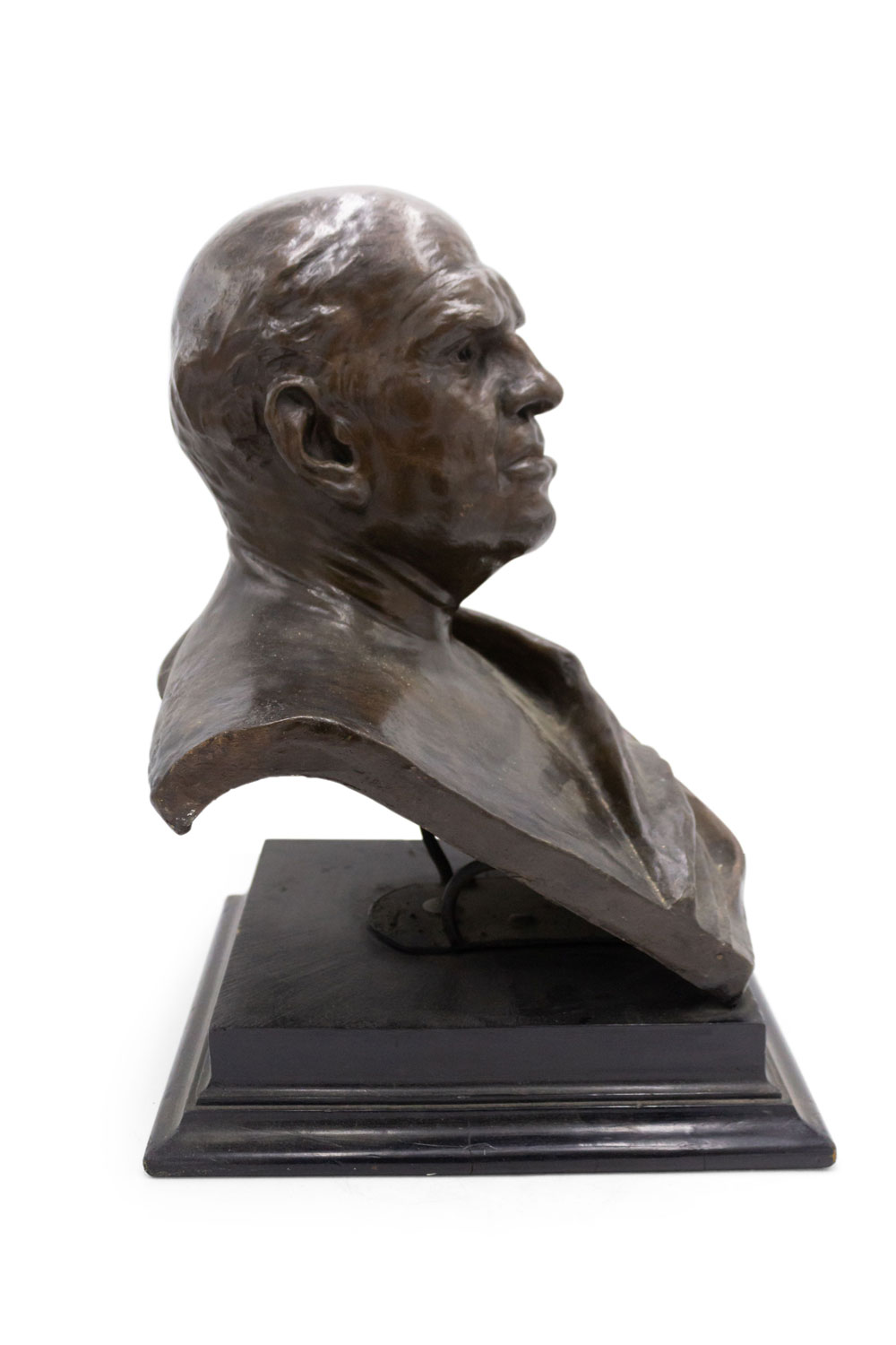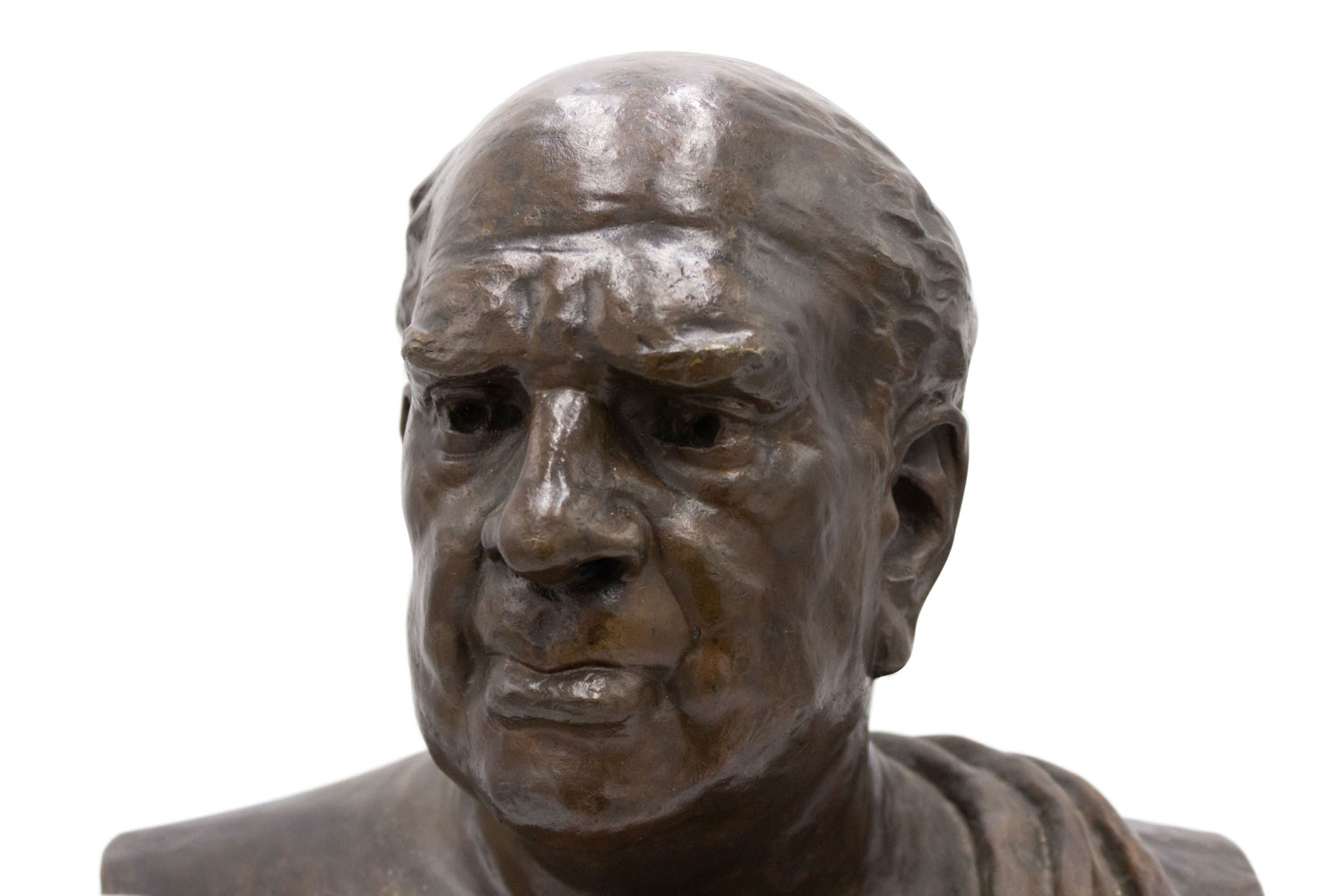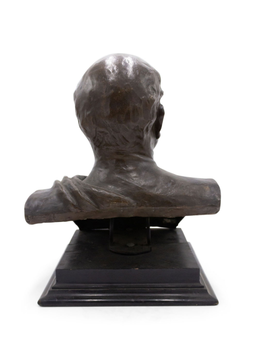 Neo-classic style bronze bust of bald man in toga on square shaped base (sgnd: Buenos Aires 1911)