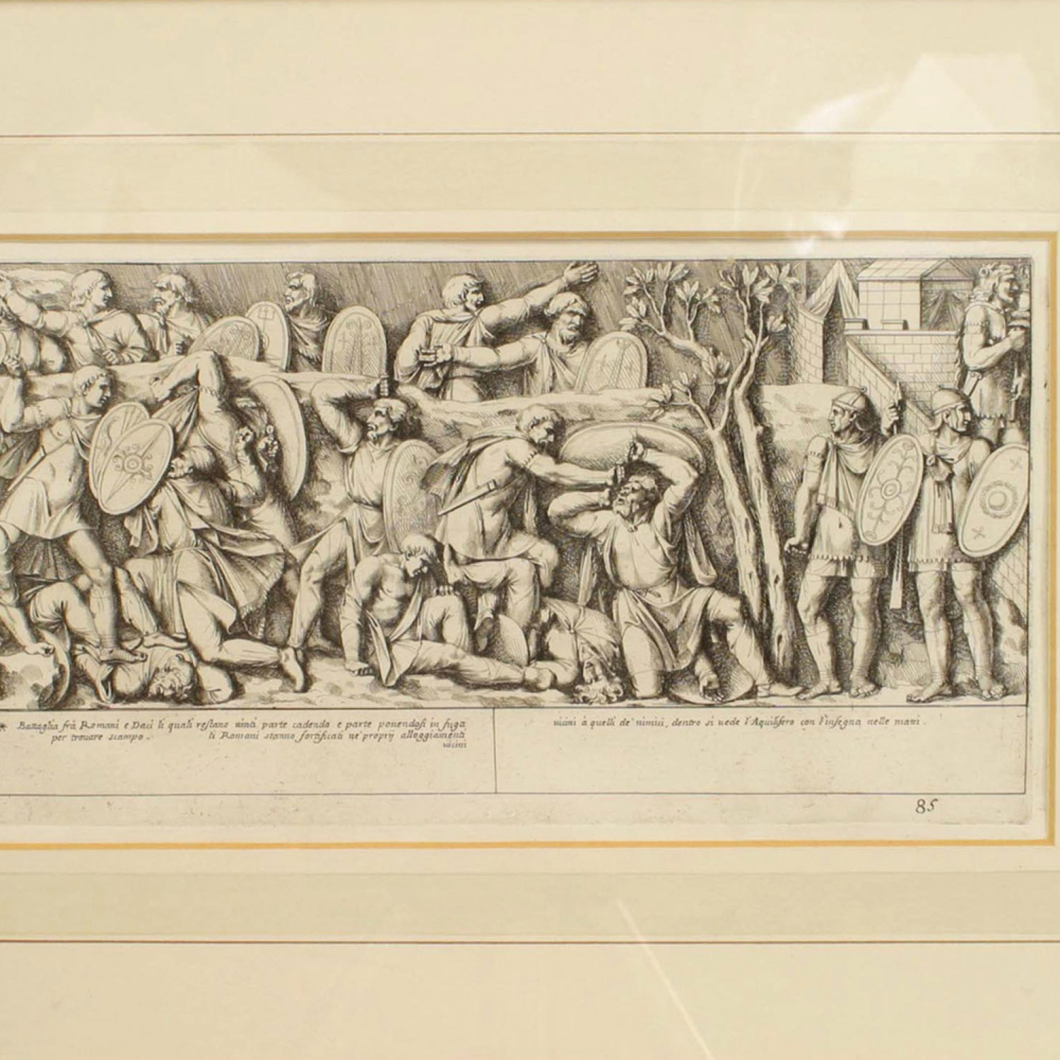Italian Neo-classic style prints of various ancient Roman historical scenes matted in a green painted and gold trim frame (part of a set of 15; associated pieces: 040102A-O).
