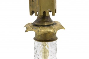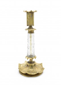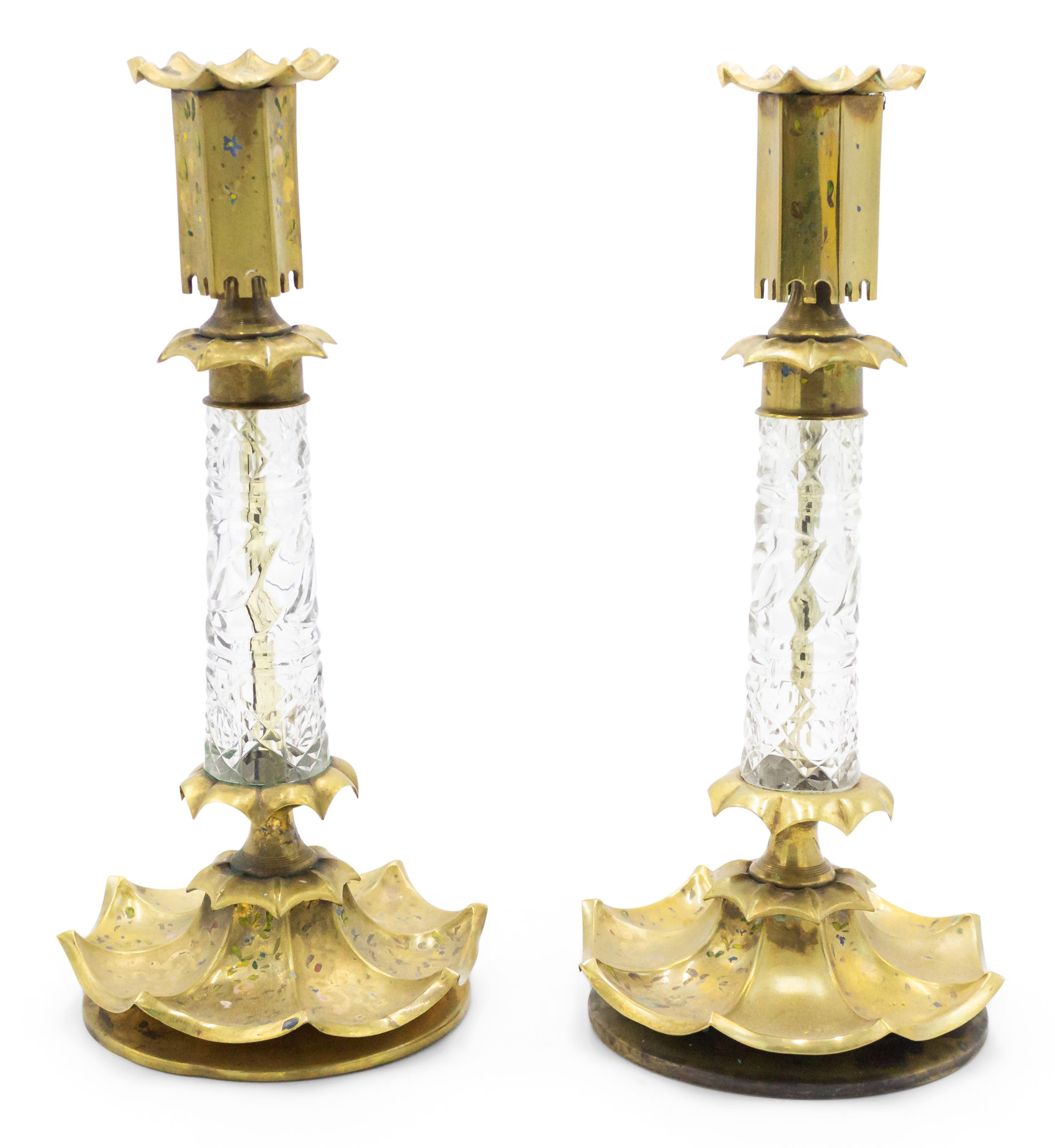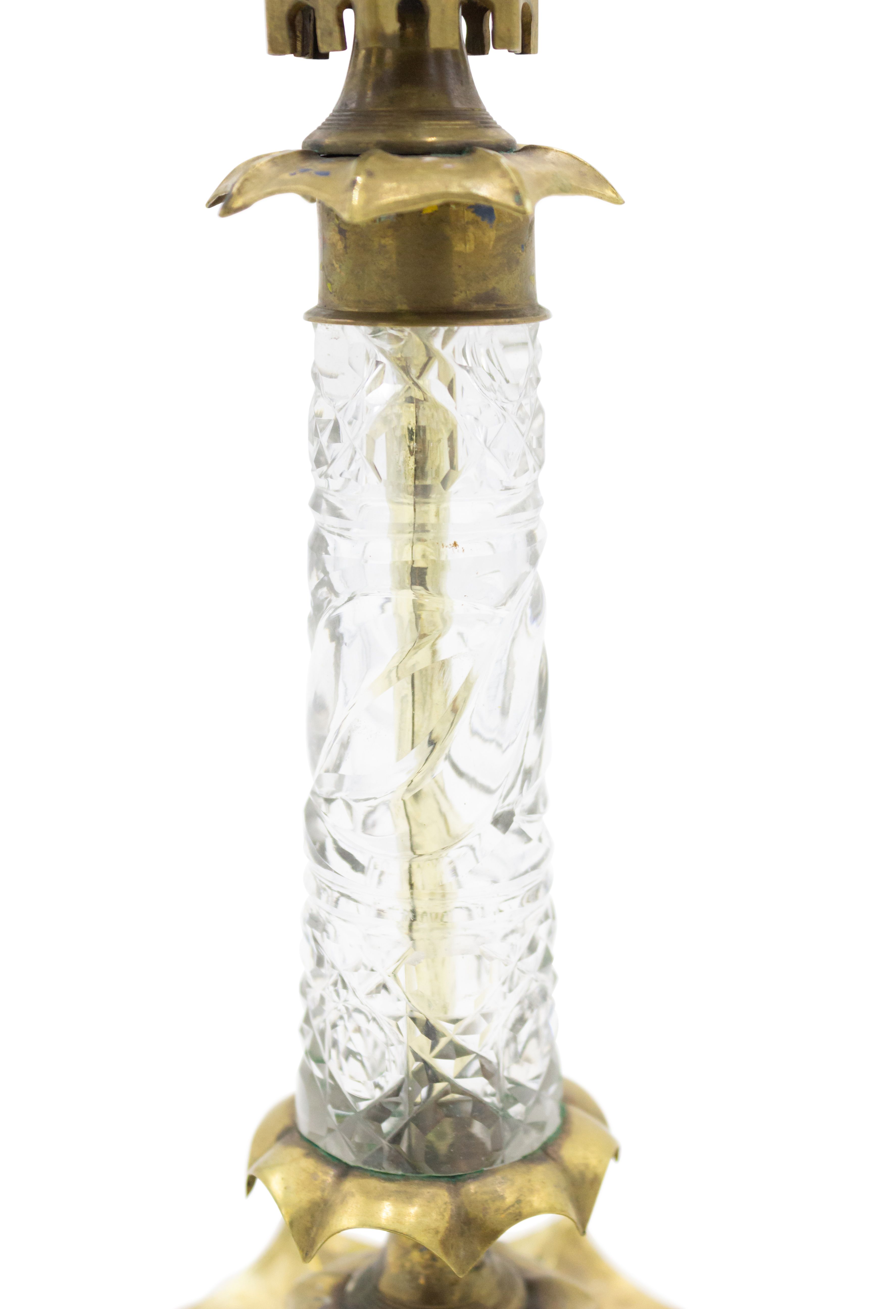 Pair of Neoclassic Cut Glass and Brass Candlesticks