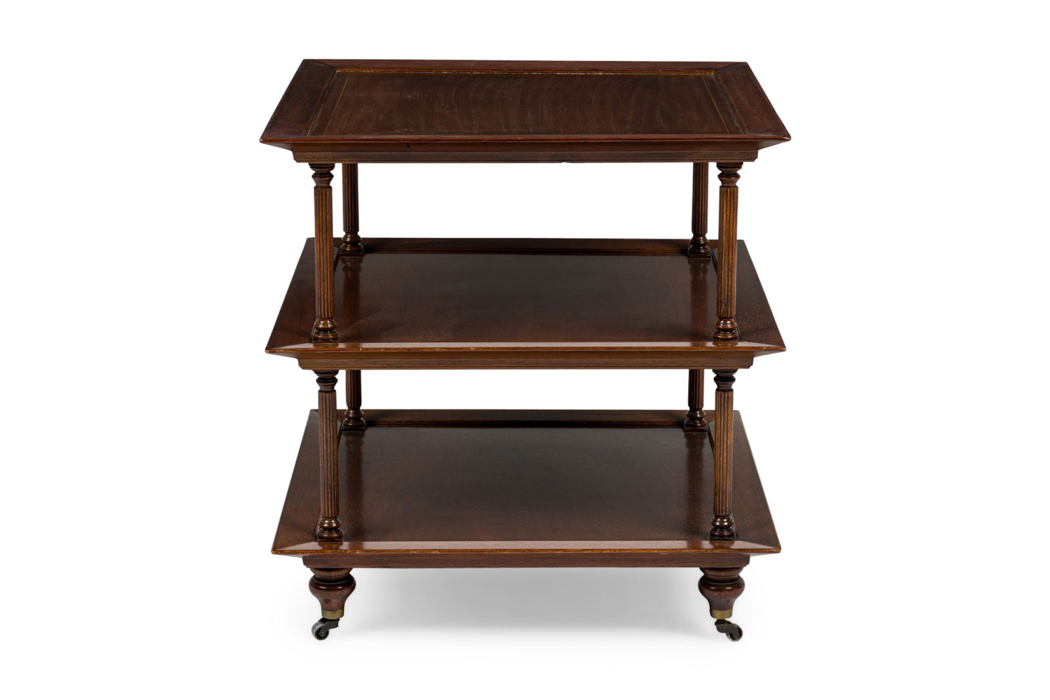 English Georgian Style 3-Tier Rolling Walnut Side Table