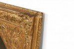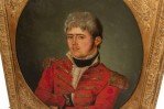 English Georgian (18/19th Cent) oil painting portrait of a young British officer with arms crossed wearing a red coat with gold epaulets in a gilt carved frame