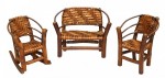 Rustic Old Hickory 3 piece miniature salesman's sample salon set comprising a hoop back rocking arm chair, settee & arm chair with rattan seats & backs.