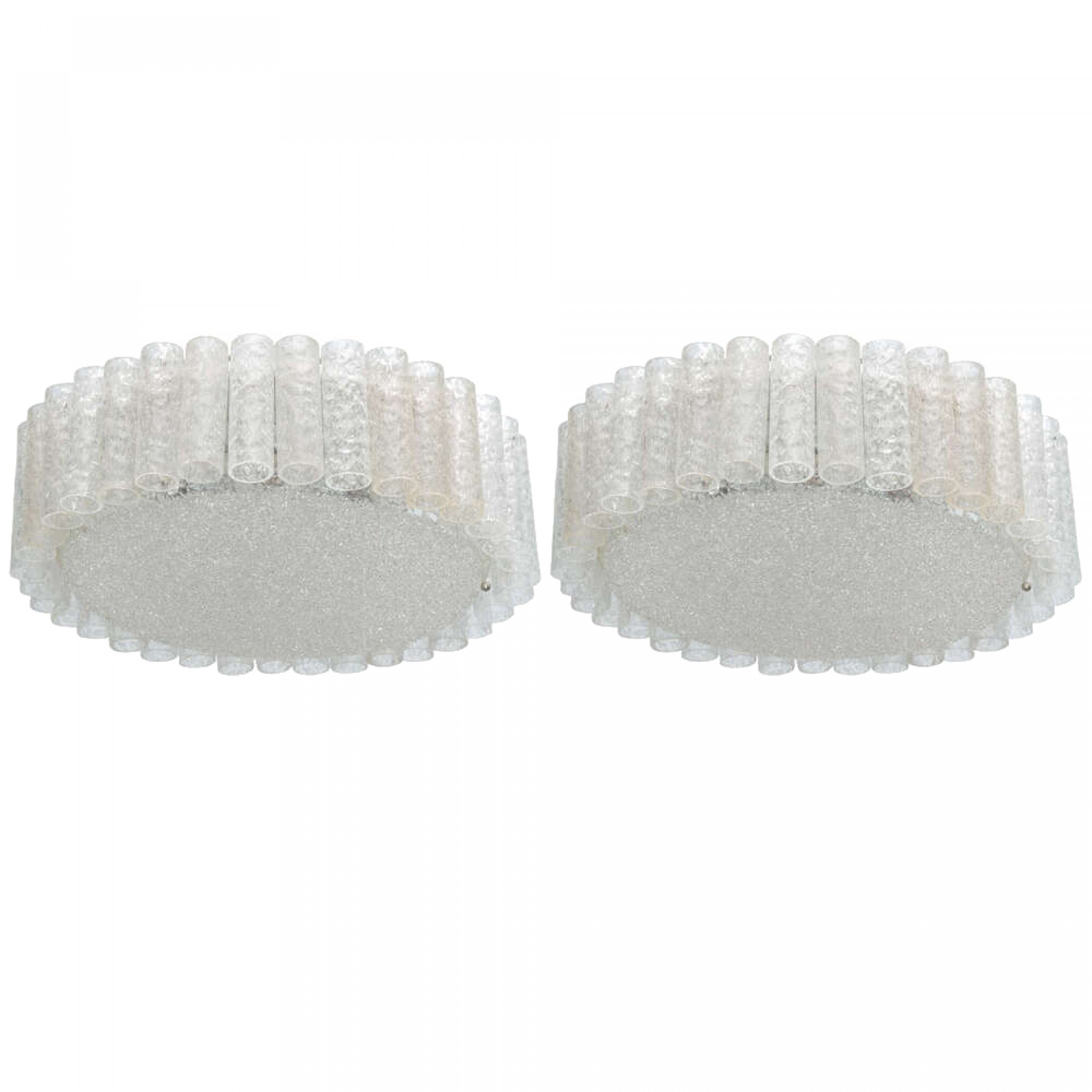 One German Modern Handblown Glass, "Doria" Flush Mount / Hanging Chandelier