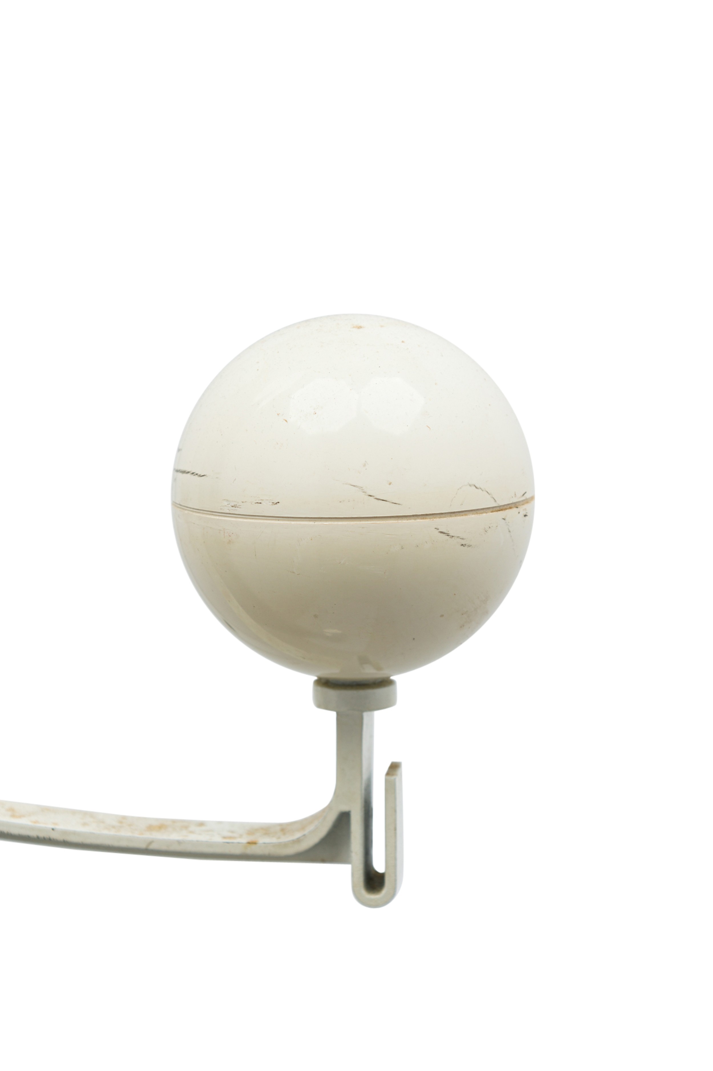 Italian Mid-Century Modern chrome plated coat rack with three bent arms tipped with off-white spheres, resting on a circular metal base. (OSVALDO BORSANI).