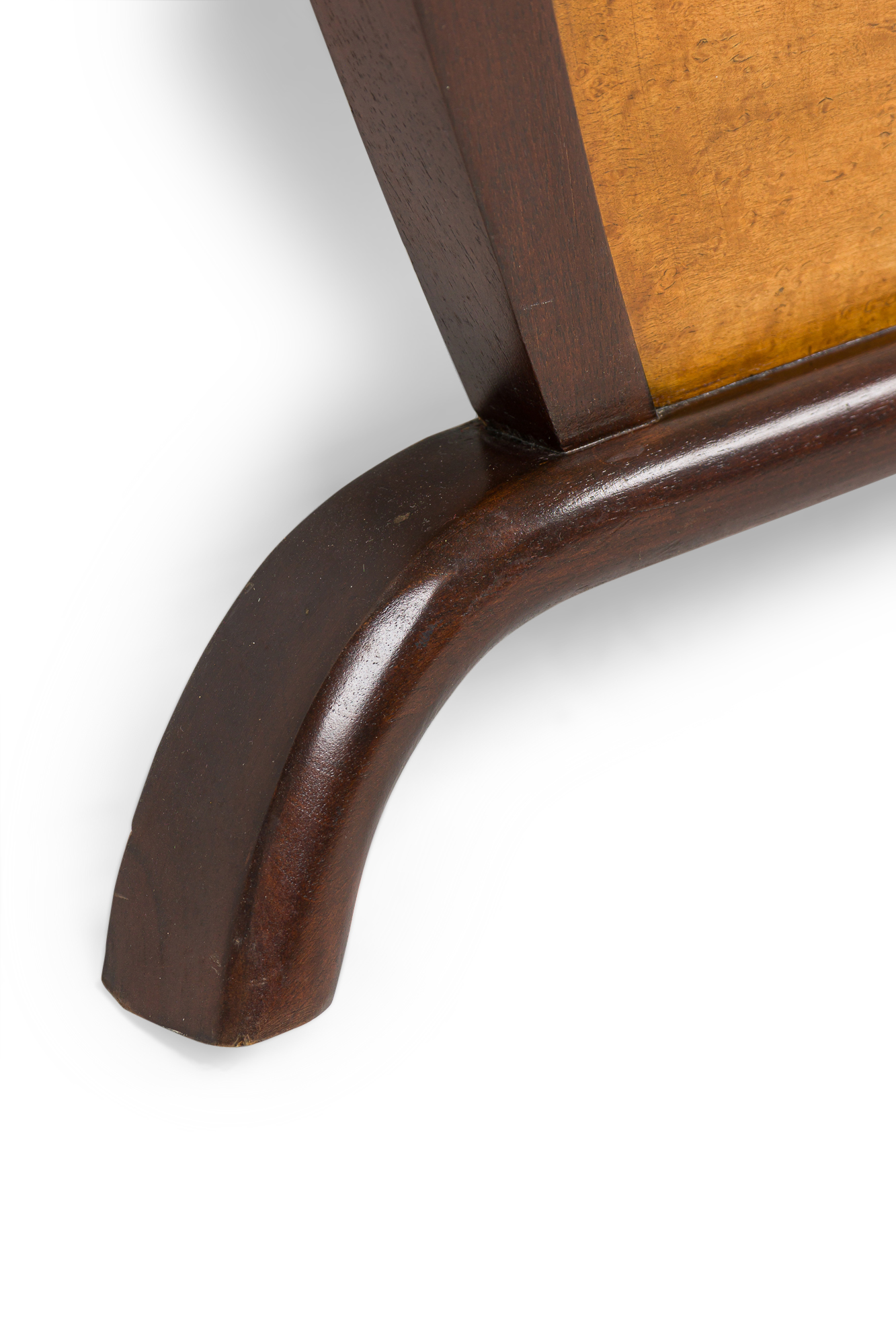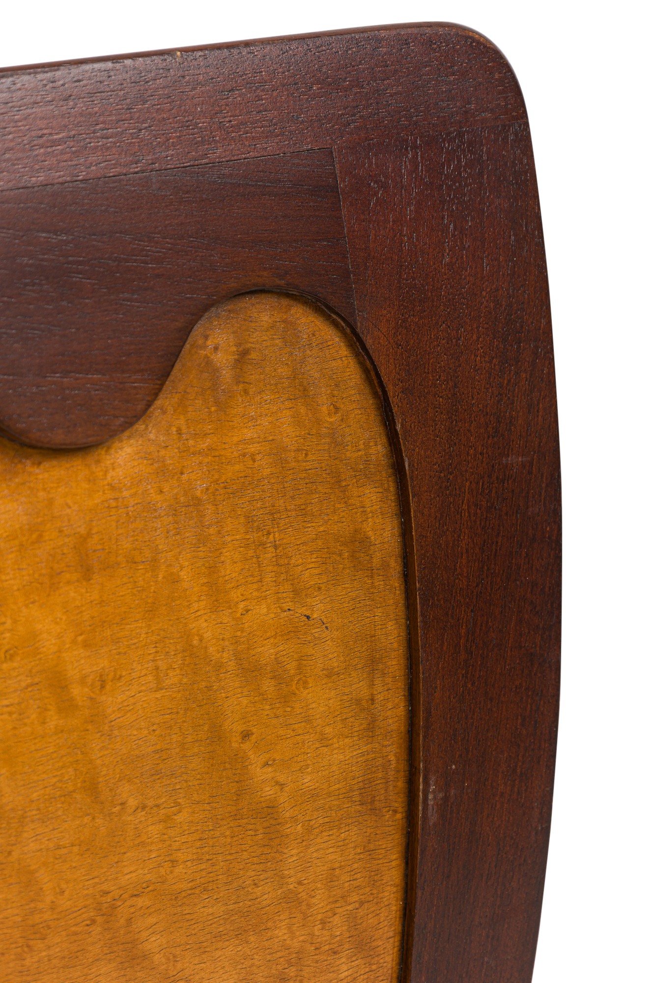 Italian Mid-Century maple and mahagany trim king size bed with scalloped design on top of frame (FOOTBOARD ONLY-CAN BE RAISED) (att: OSVALDO BORSANI) Osvaldo Borsani King-Size Bed