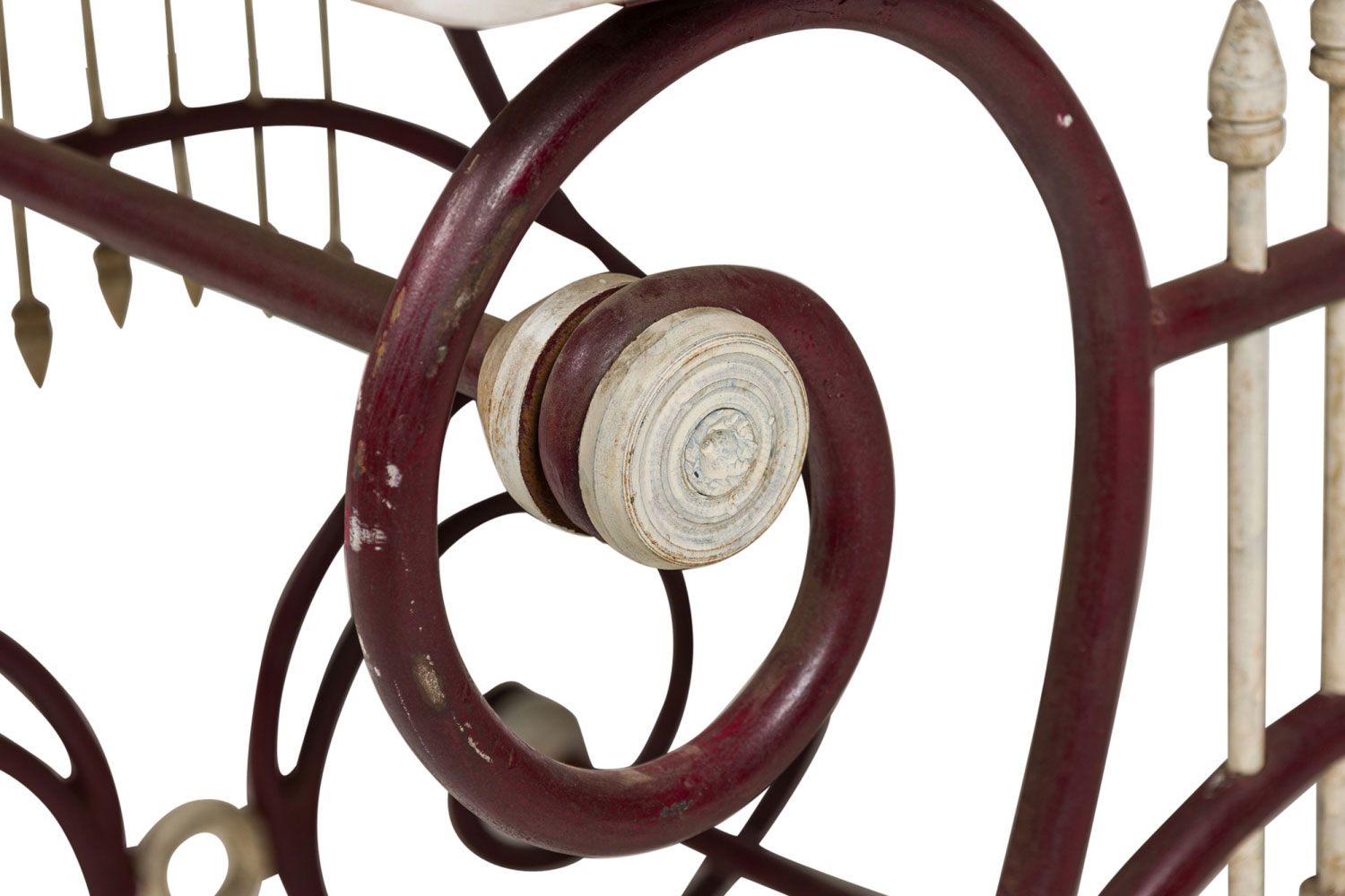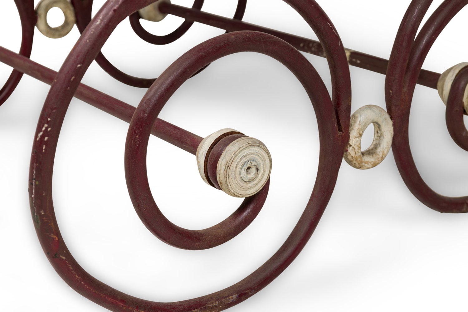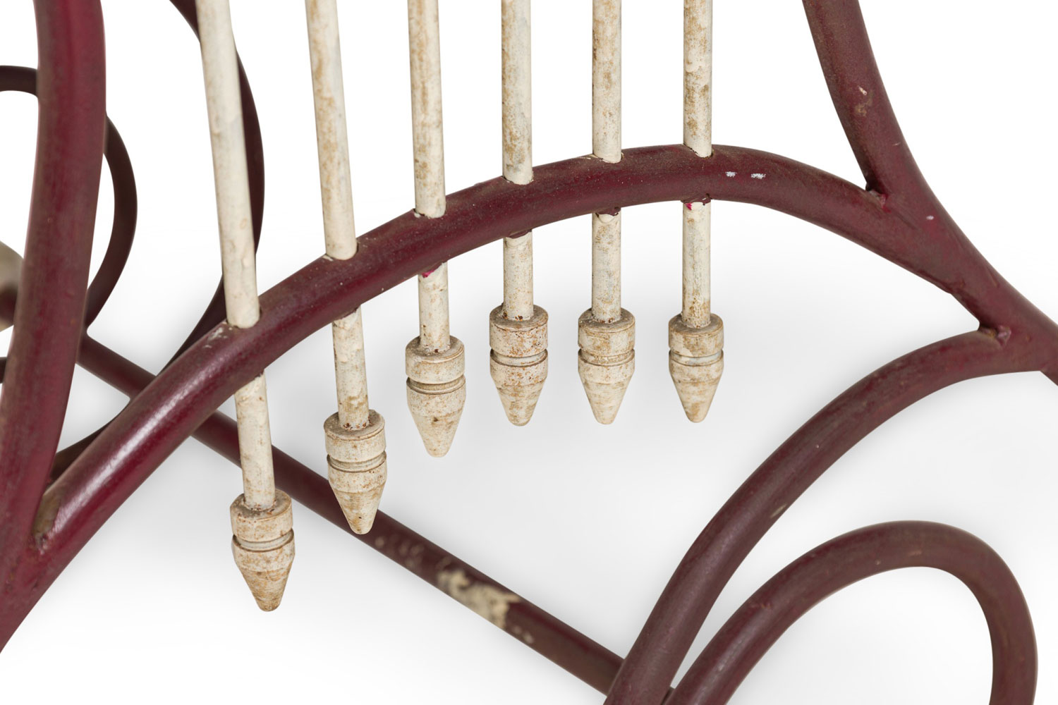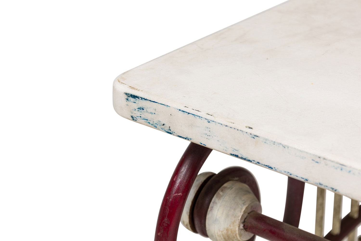 Outdoor Continental French Victorian painted iron butchers table with lyre design and white marble top