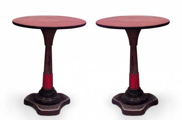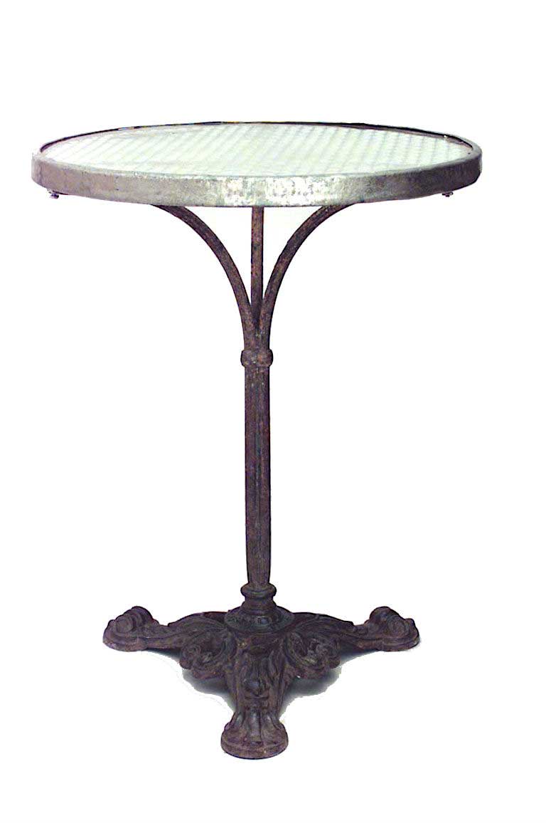 Outdoor French (Late 19th Century) painted iron pedestal base cafe table with round inset crystal tops.