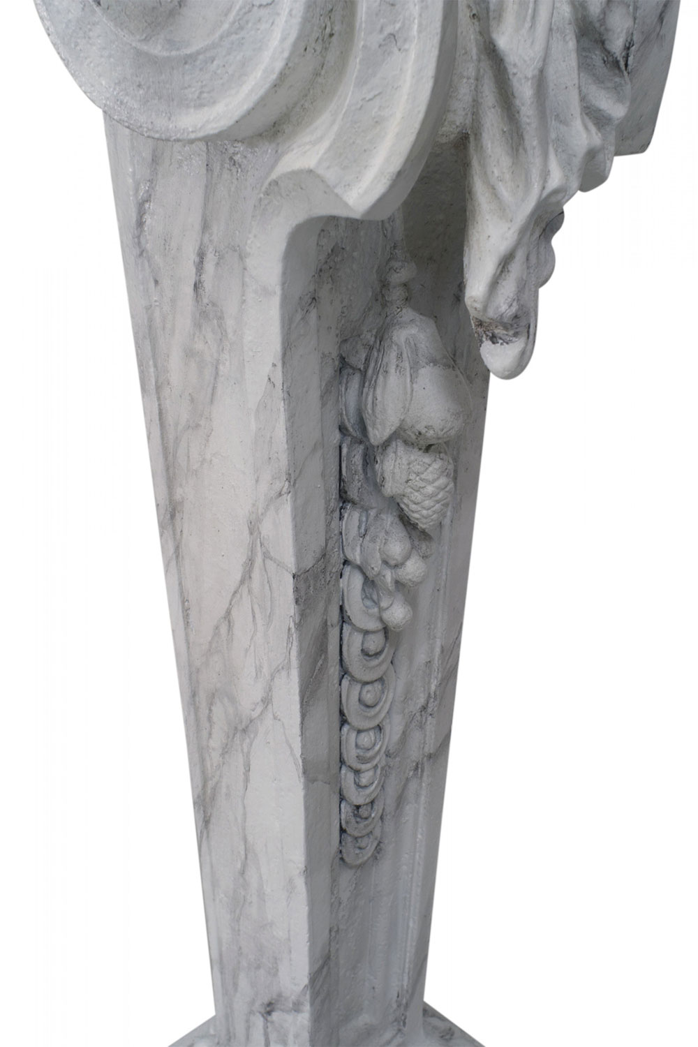 PAIR of Outdoor faux marble painted iron classic life size female figures on scroll base holding cornucopia (19/20th Cent) (attr. Val D'Osne)