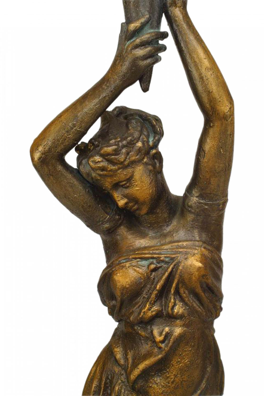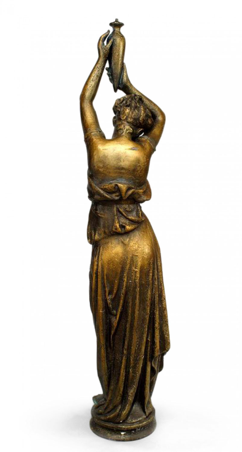 SET of 4 Outdoor painted iron classic life size female figures holding small urn above head (19th Cent.).