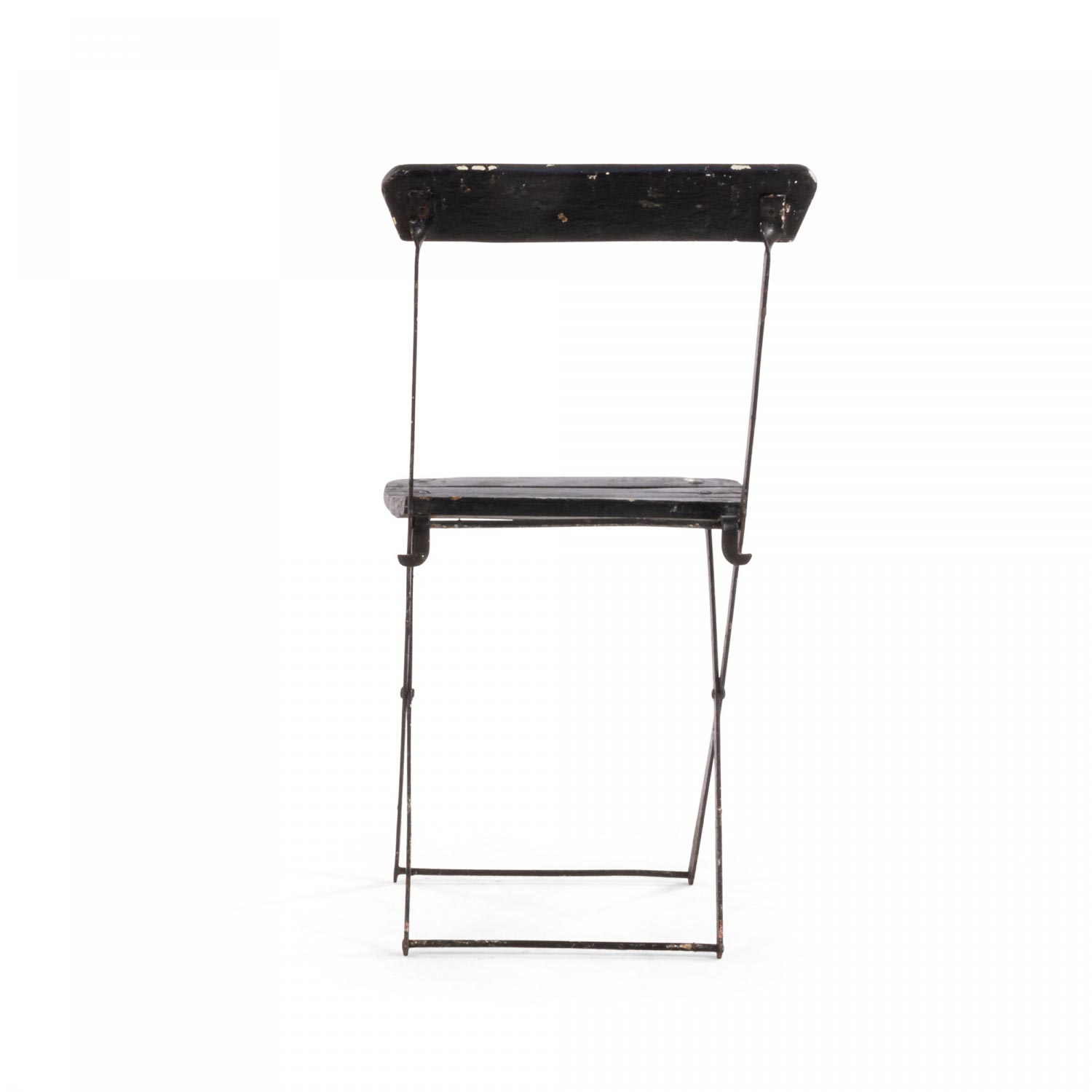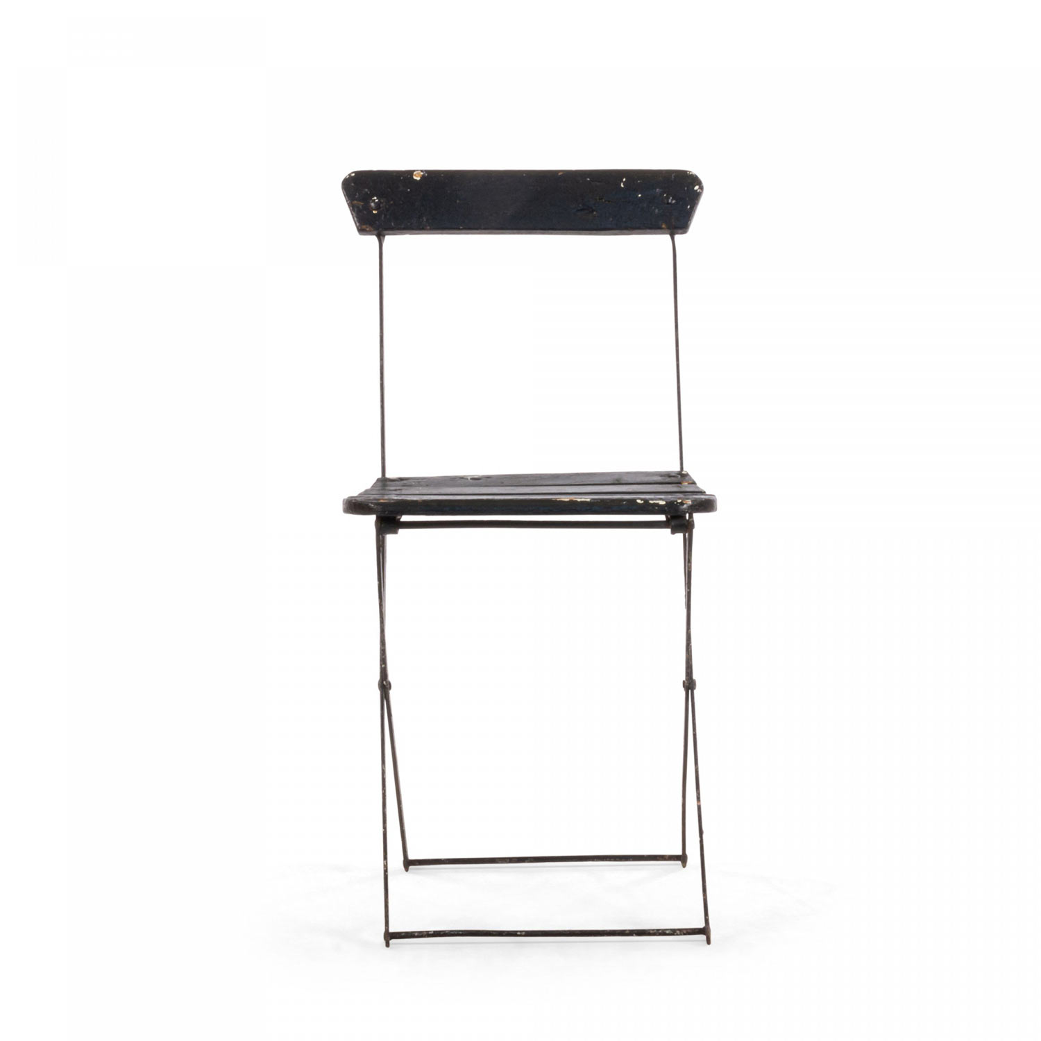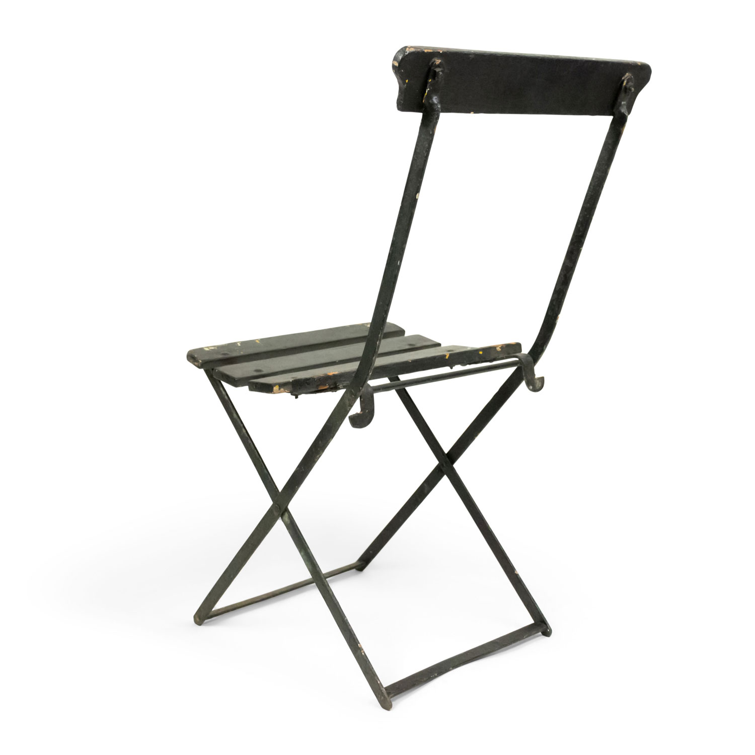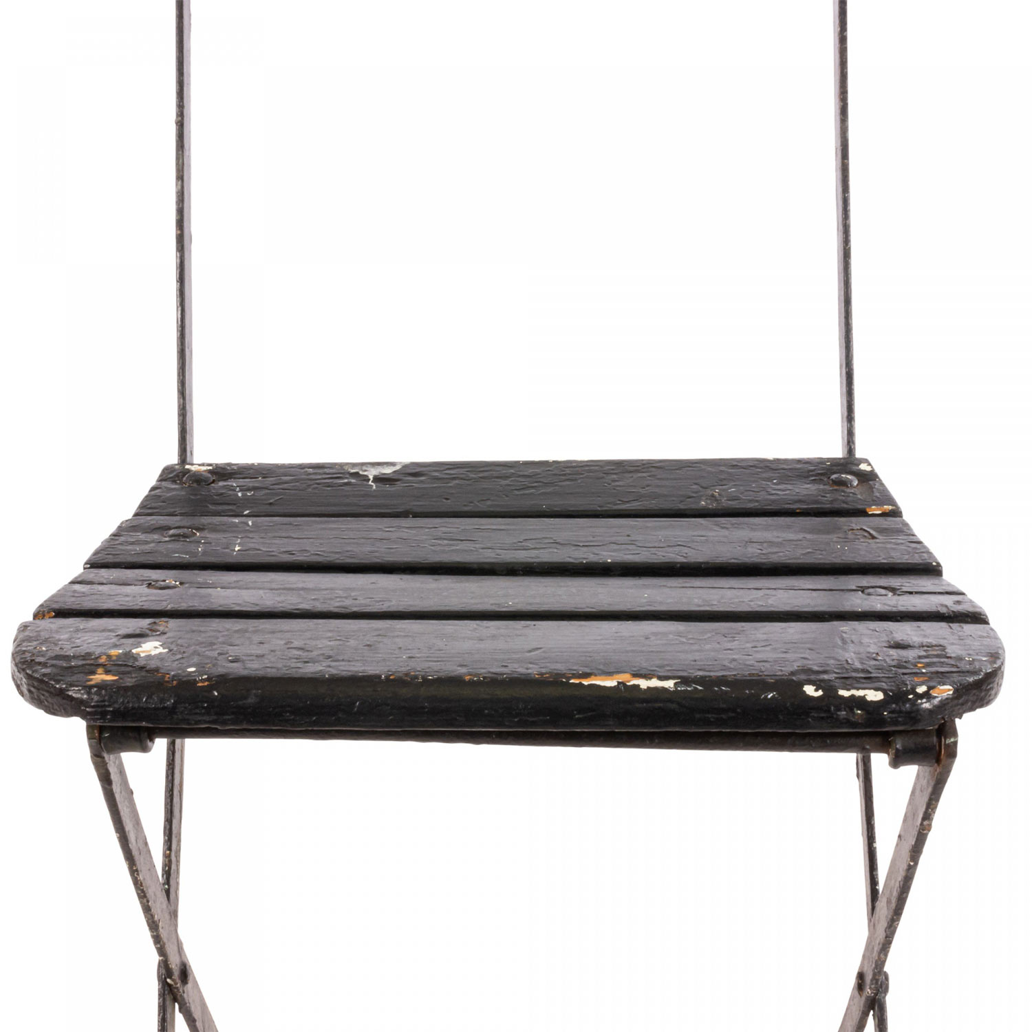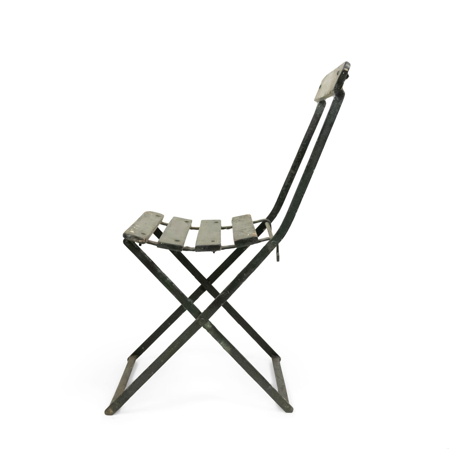 23 Outdoor iron folding side bistro chairs with single slat back and slat seat. (19/20th Cent) PRICED EACH.