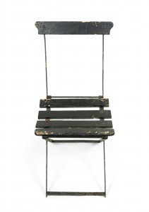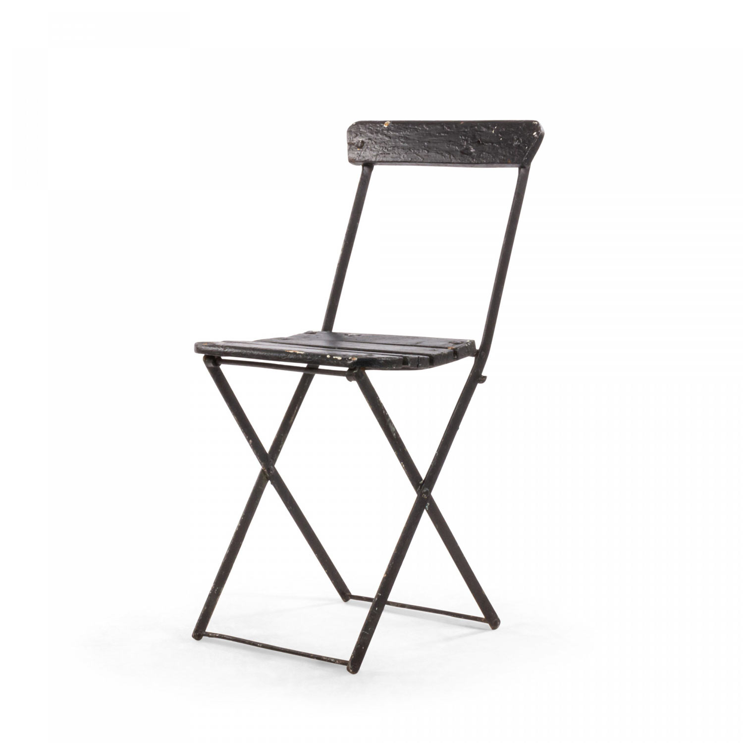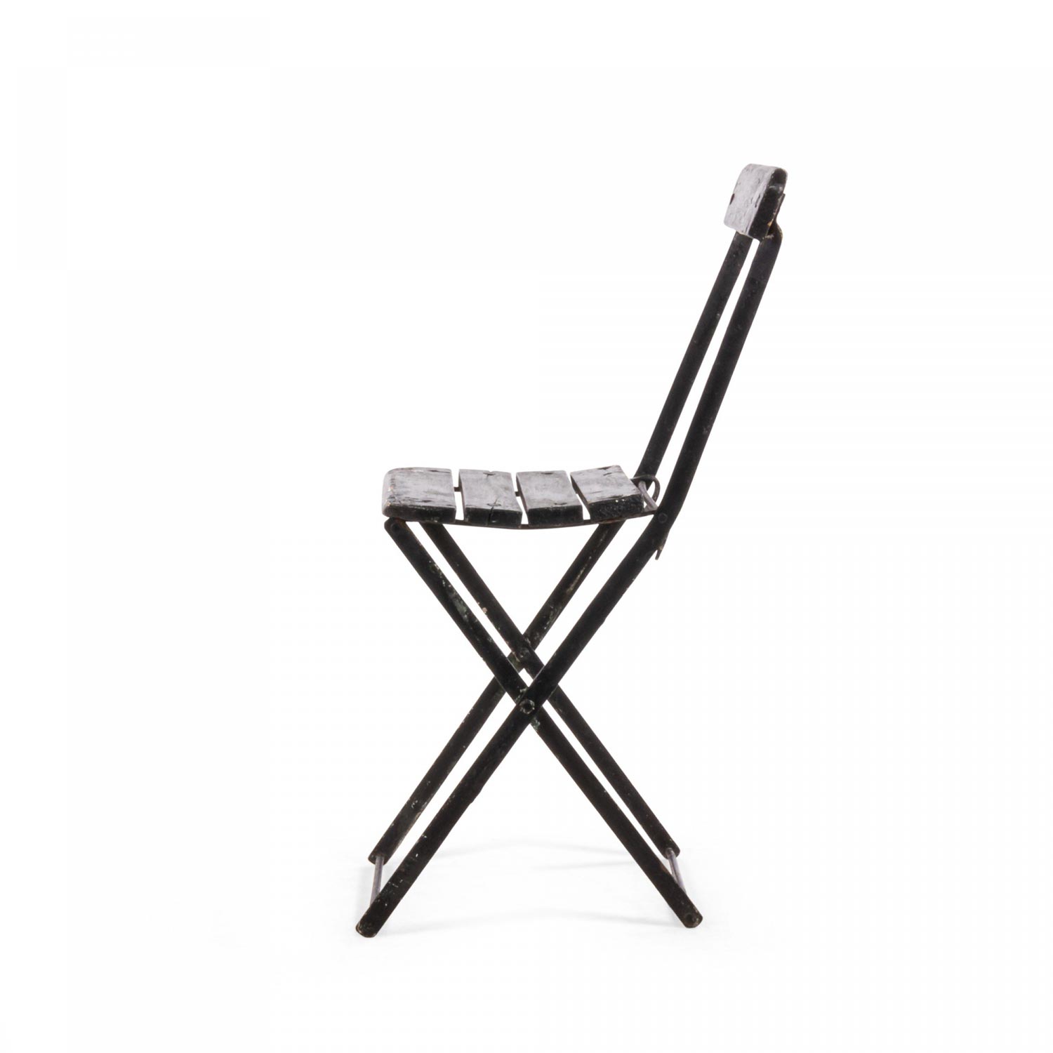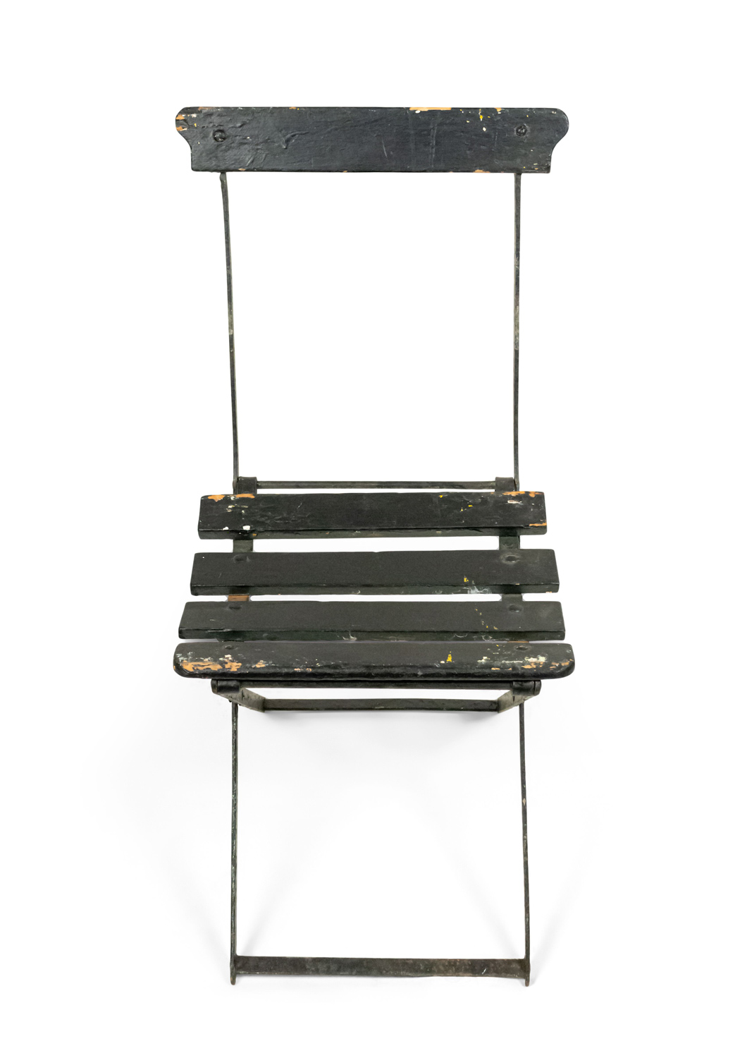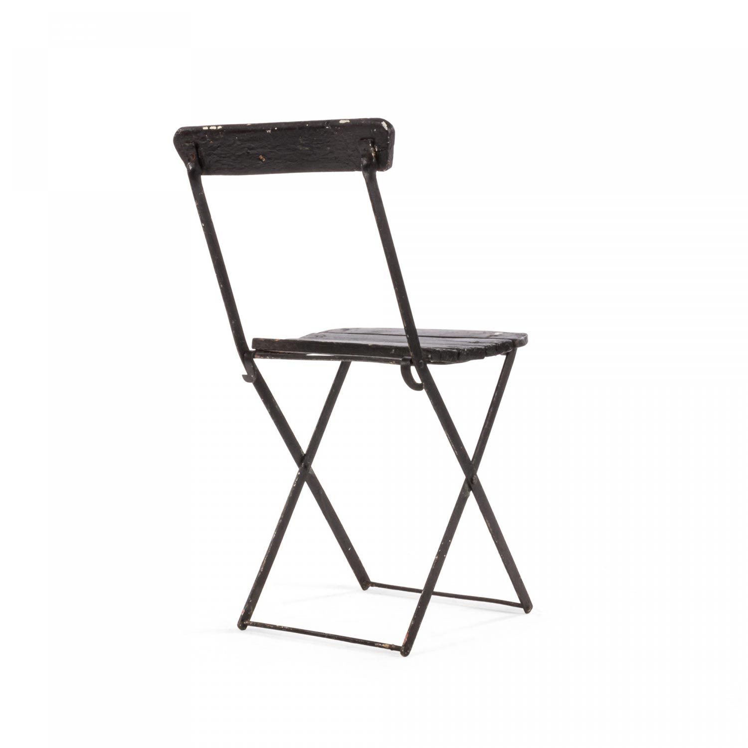 23 Outdoor iron folding side bistro chairs with single slat back and slat seat. (19/20th Cent) PRICED EACH.