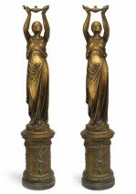 Pair of Outdoor Iron Greek Female Figure Statuaries