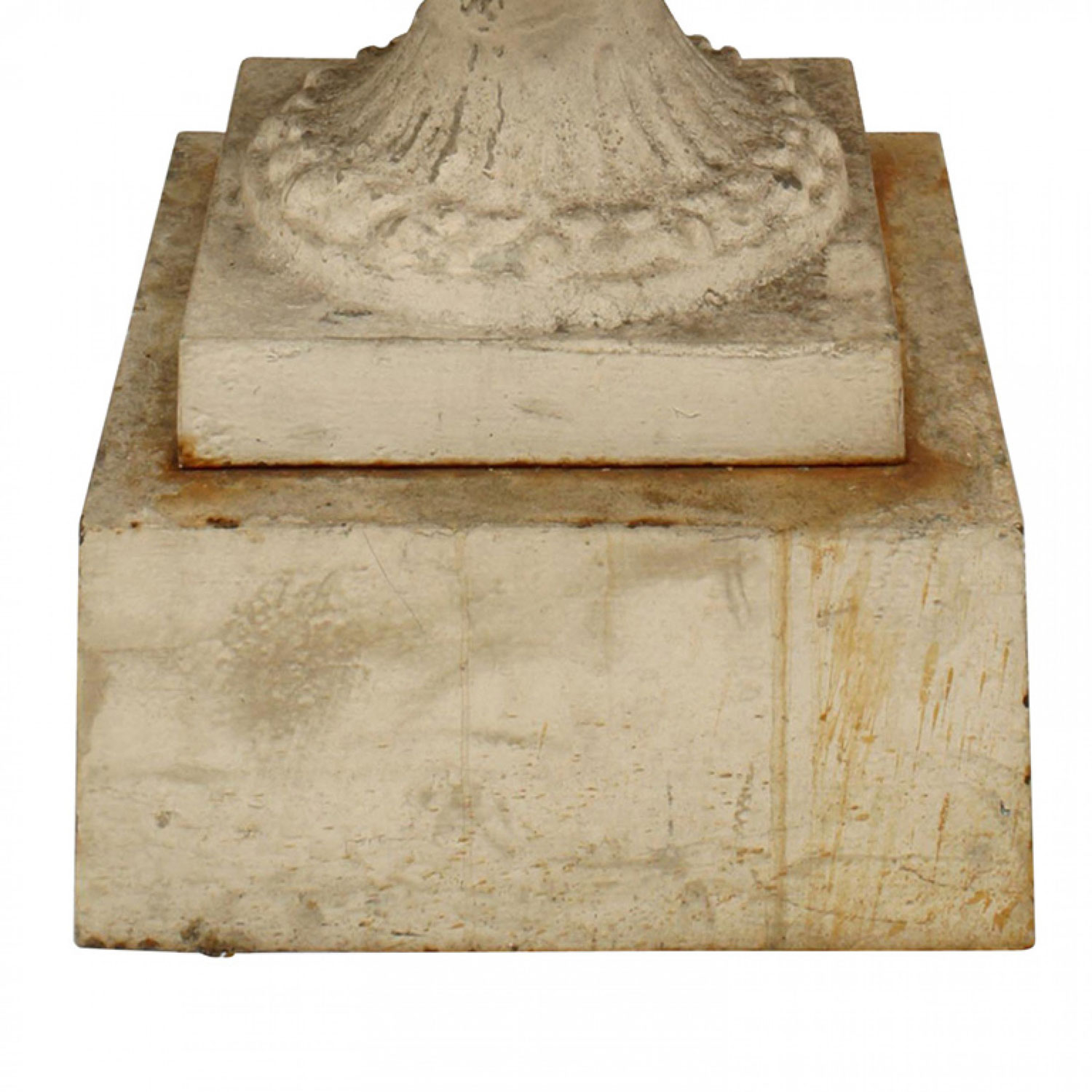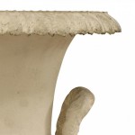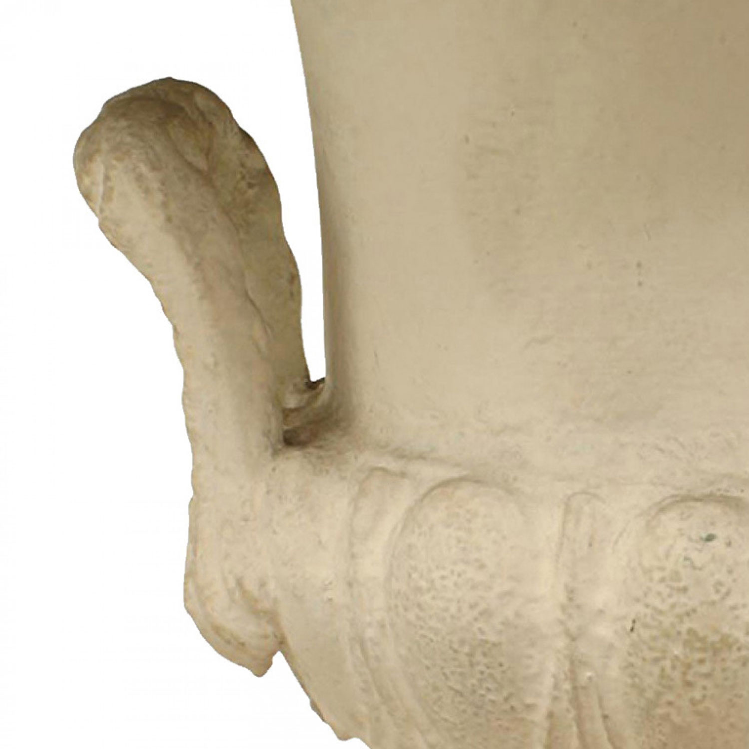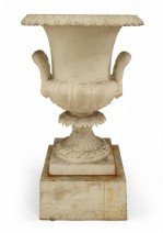 Outdoor Victorian style iron urn on base with scalloped edge and handles (20th Cent.)