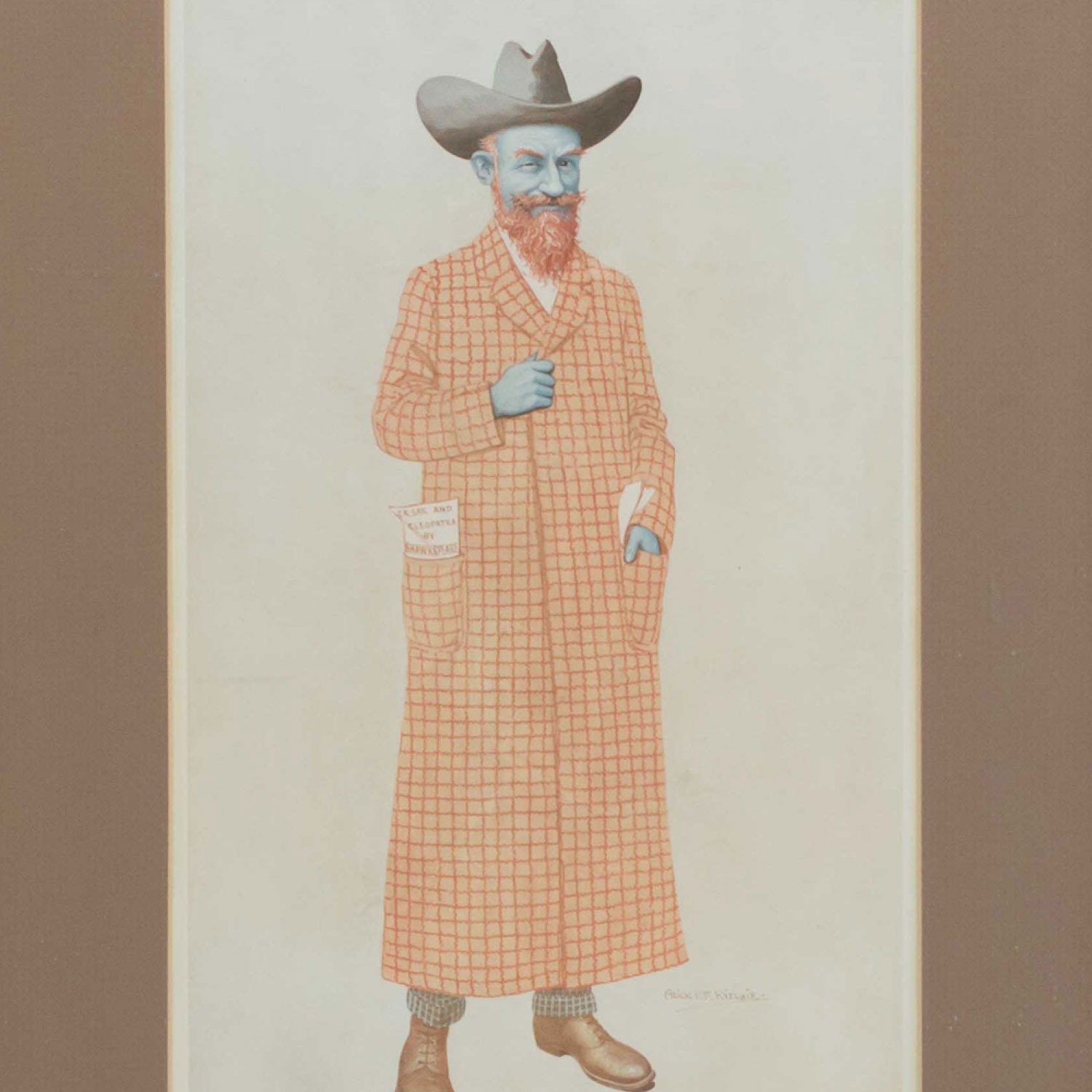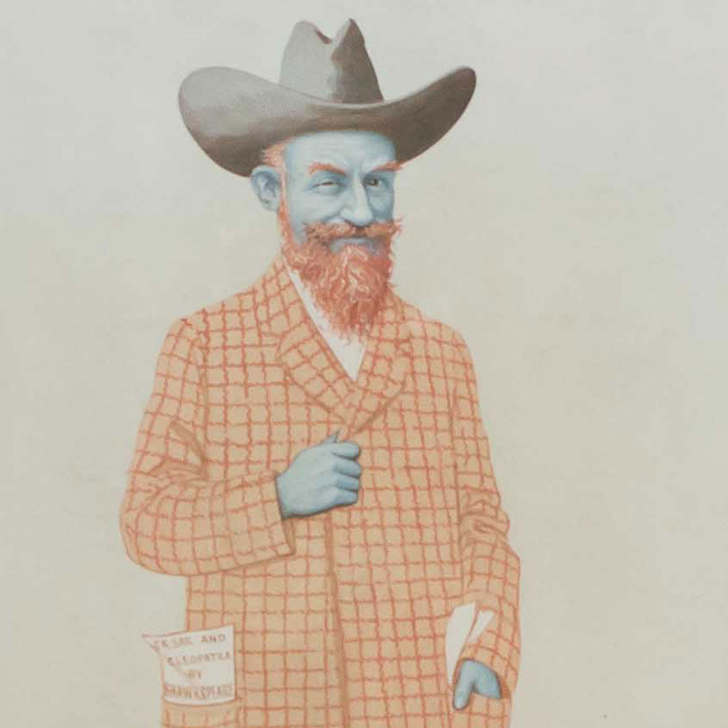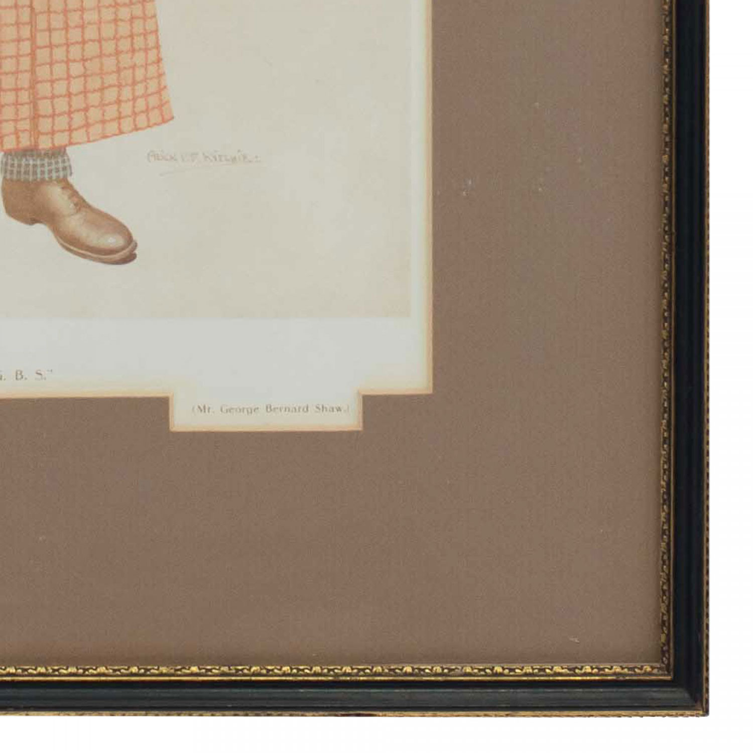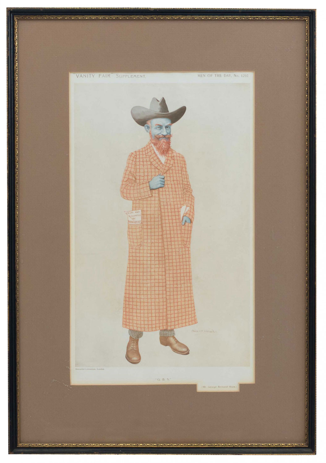 English lithograph caricature of George Bernard Shaw wearing a long coat in a black & gilt wood frame with brown matting (Alick P. F. Ritchie for VANITY FAIR, "Men of the Day No. 1292", ca. 1911) (Similar to: JOH6219)